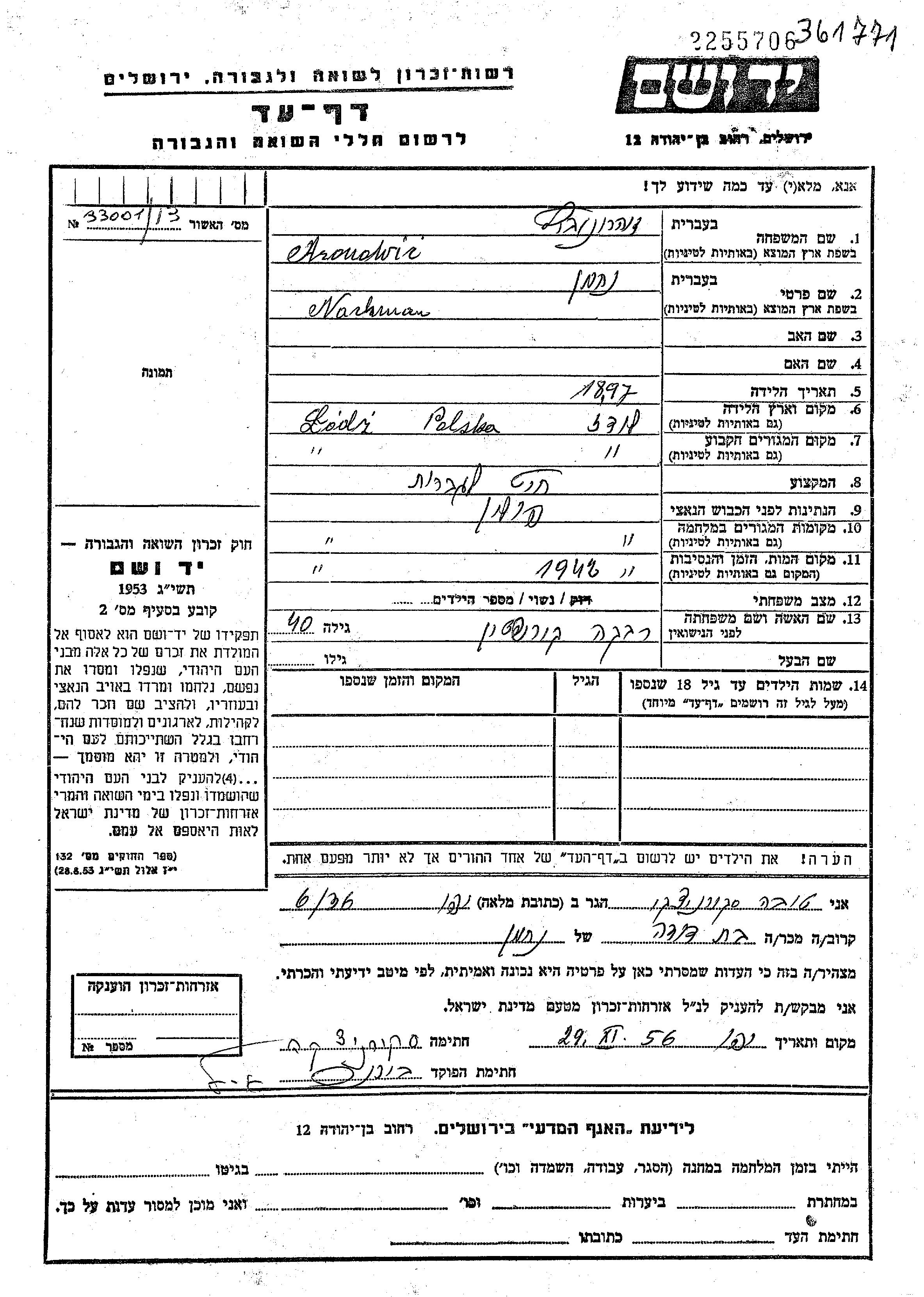 Поиск подателя Листа свидетельских показаний. Поиск по любому имени, включая уменьшительное или прозвище