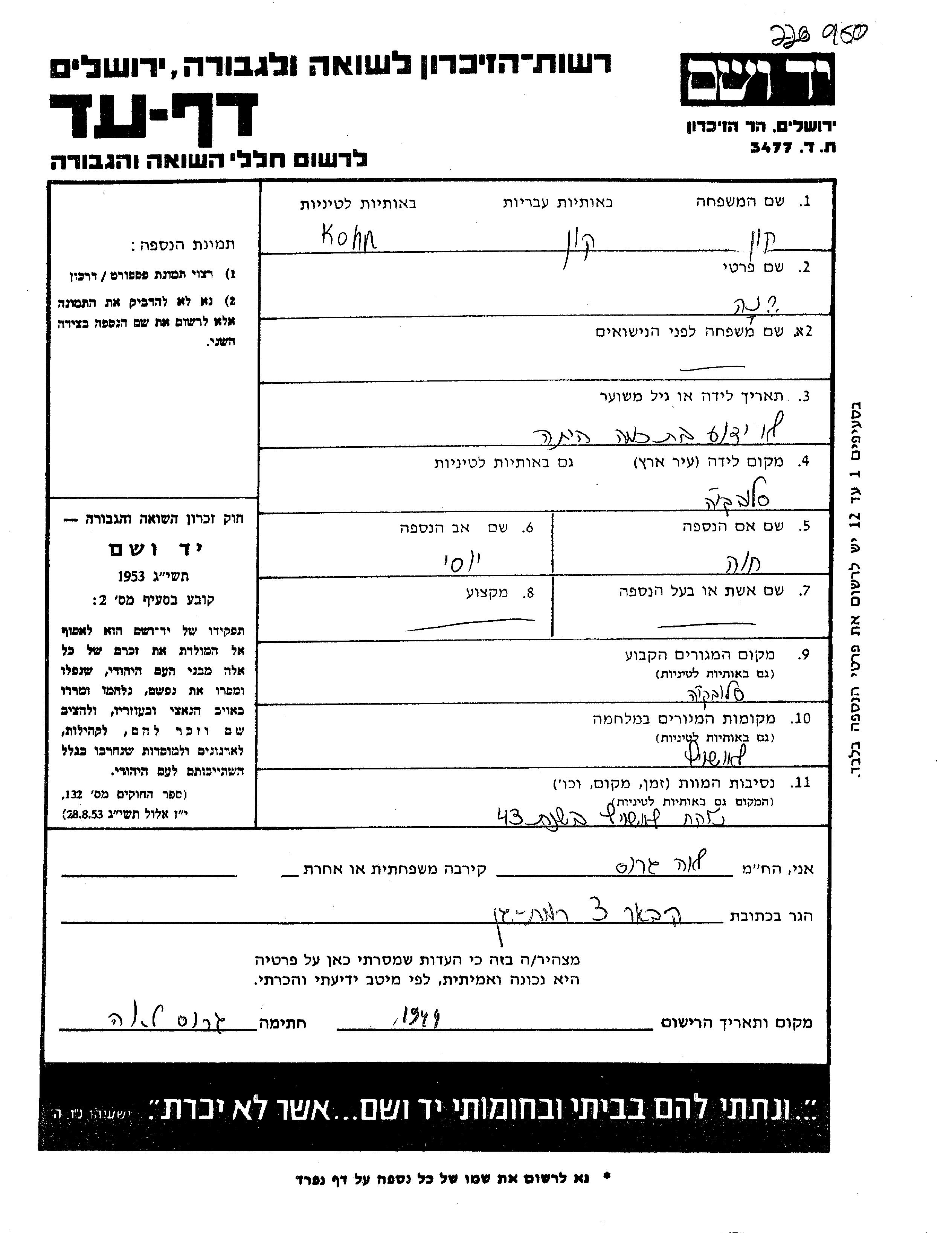 Яд Вашем - Листы свидетельских показаний Мемориального фонда