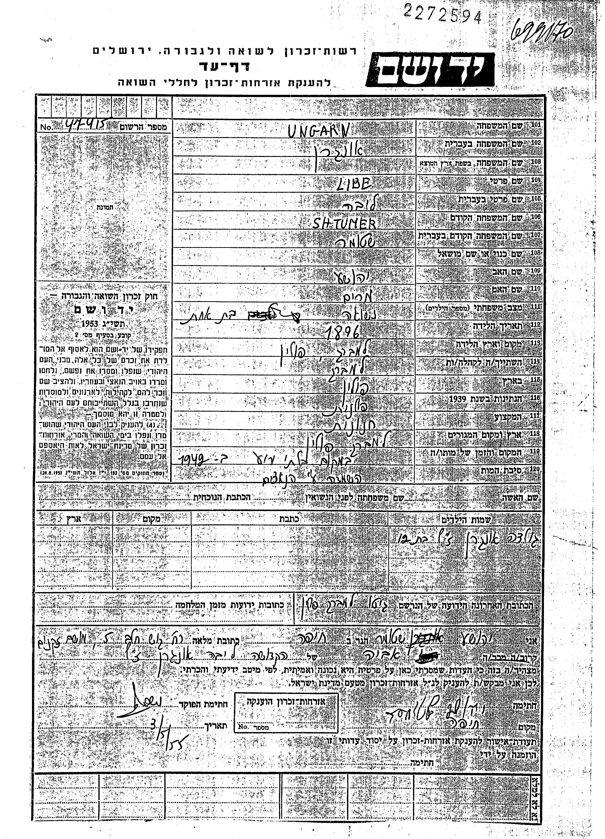 Голда Унгарн, место рождения: Львов, Польша.Mать:Либа, девичья фамилия Штумер. Ребенок. Место жительства до войны: Львов, Польша. Место во время войны: Львов, Польша.