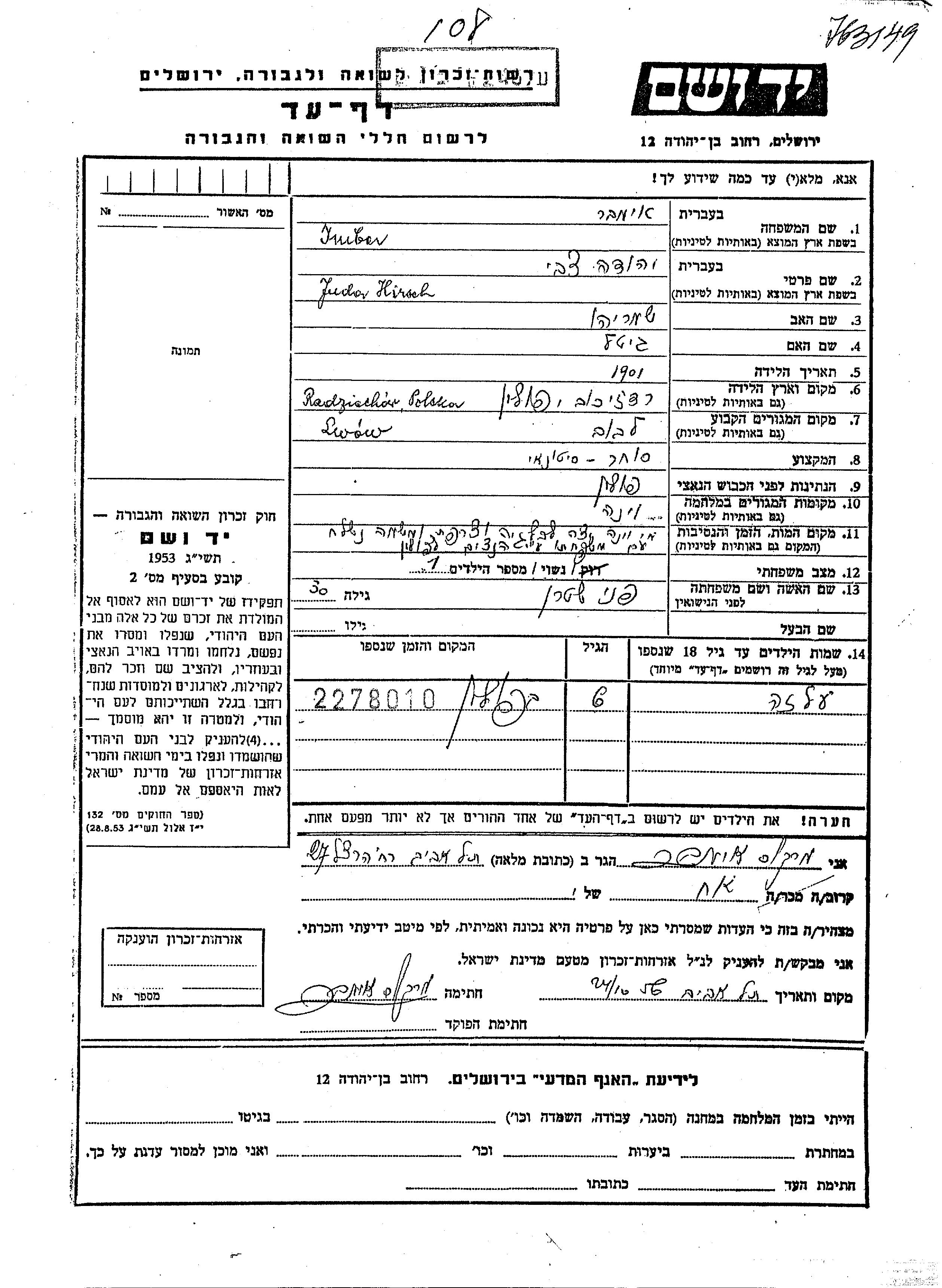 Яд Вашем - Листы свидетельских показаний Мемориального фонда