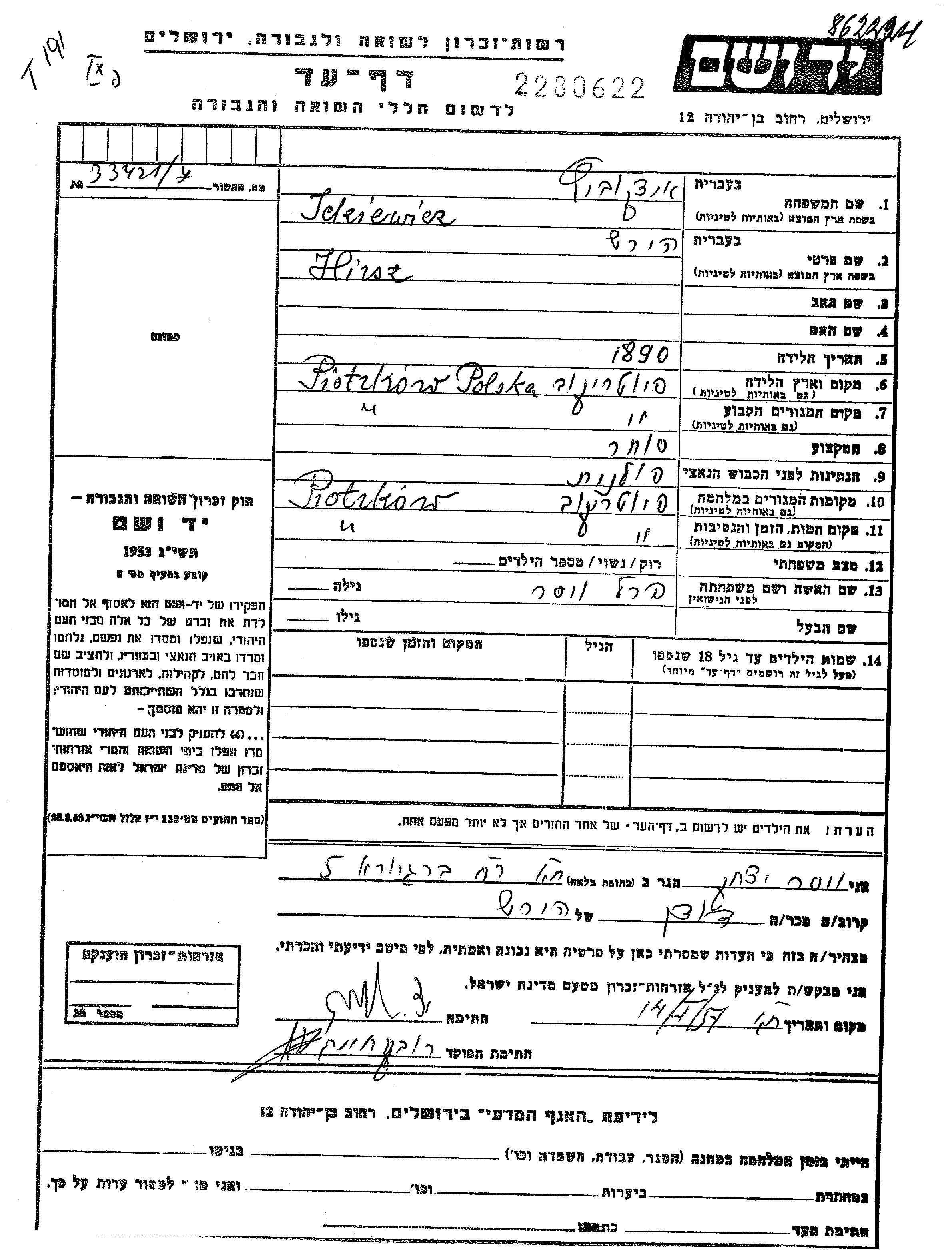 Яд Вашем - Листы свидетельских показаний Мемориального фонда