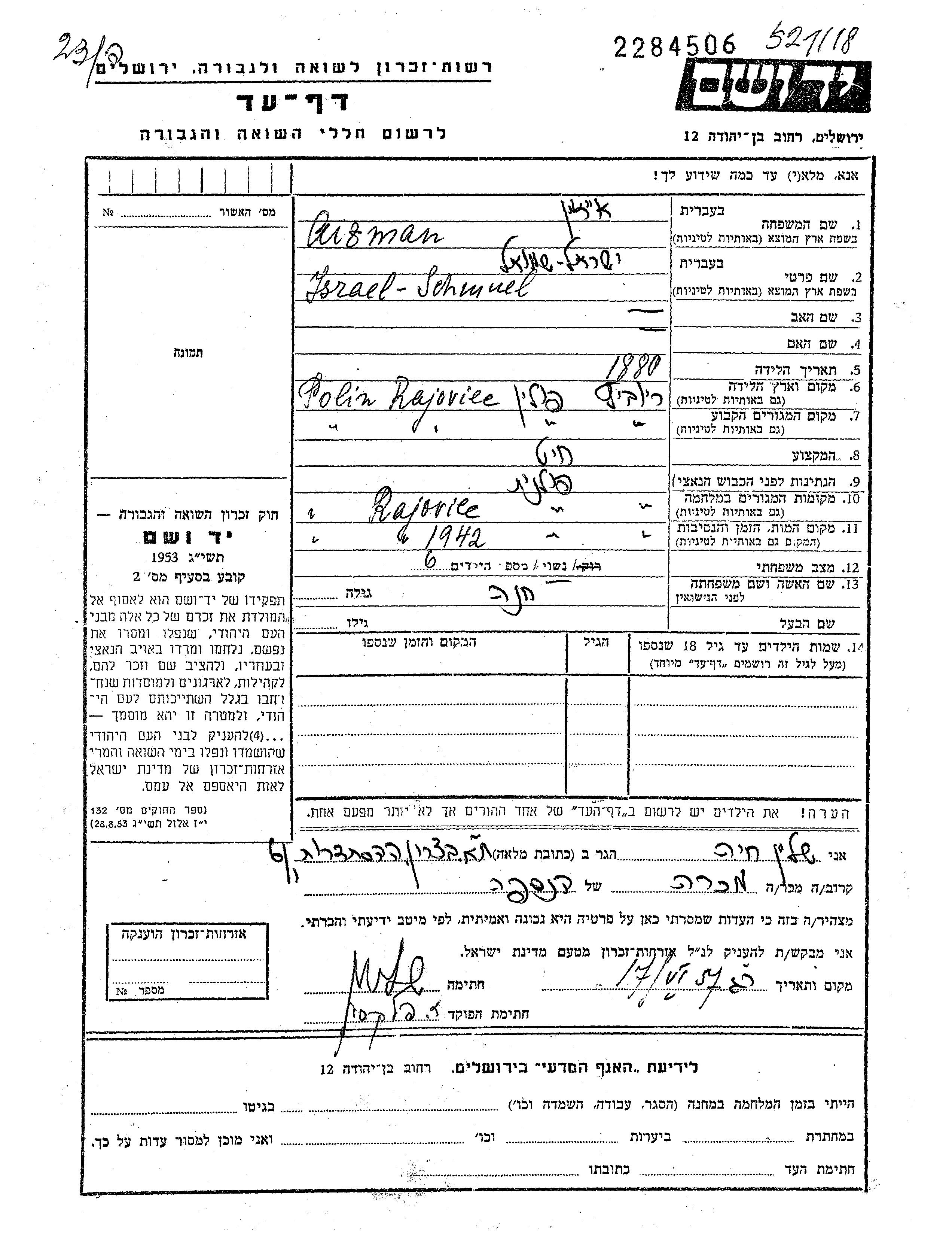 Исраэль уничтожен в период Шоа. место смерти: Реёвец, Польша в 1942.