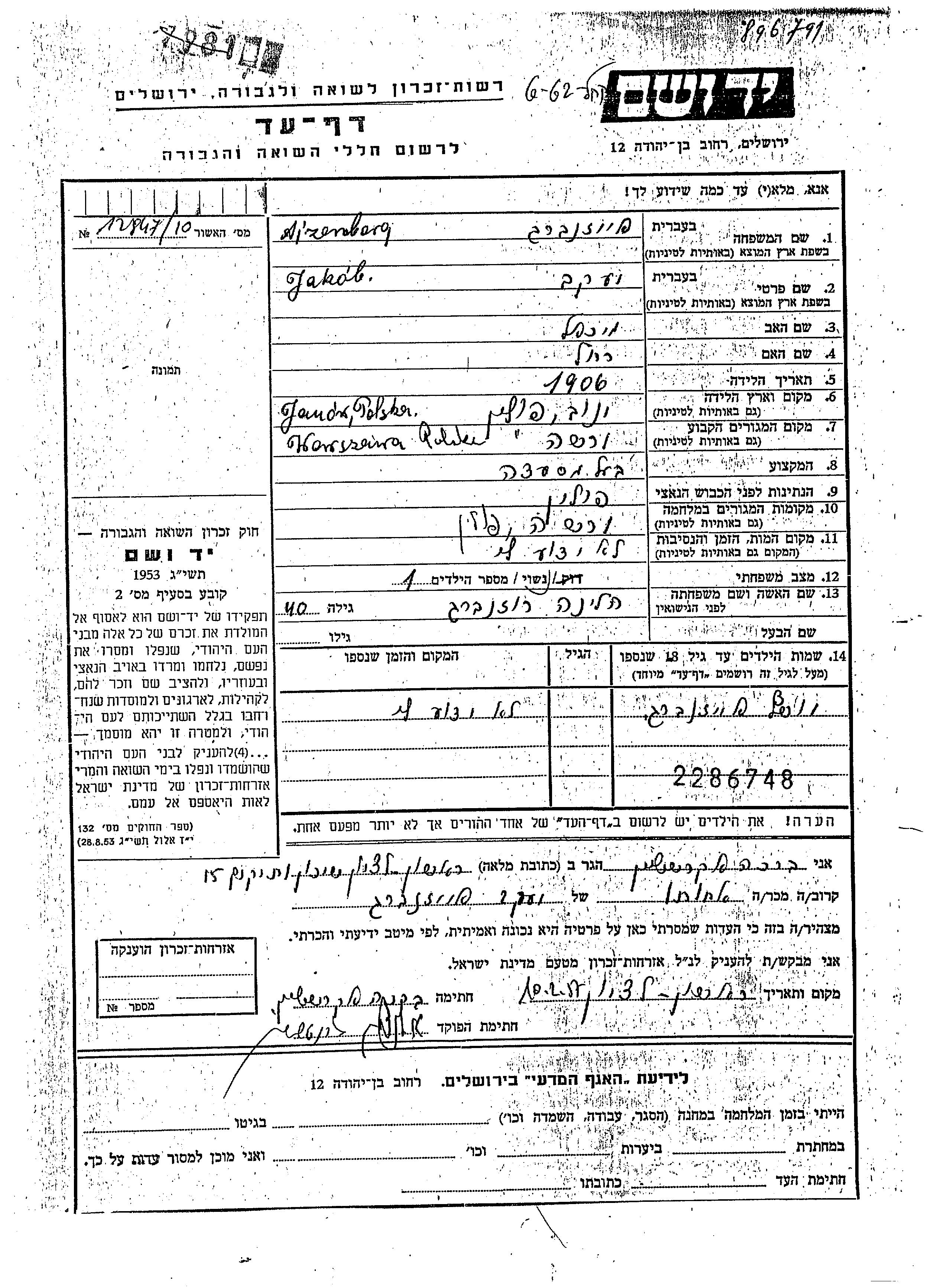 Яд Вашем - Листы свидетельских показаний Мемориального фонда