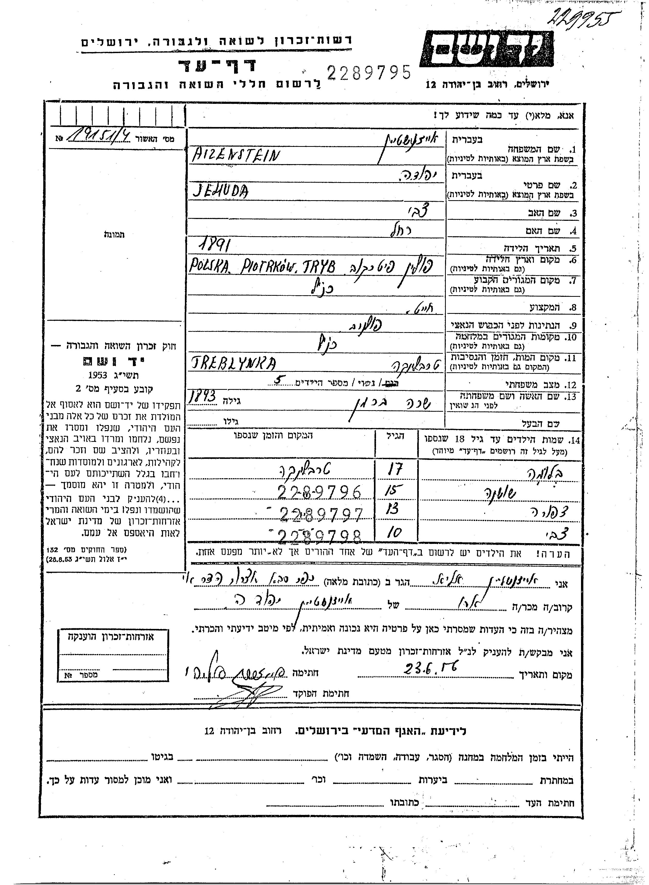 Яд Вашем - Листы свидетельских показаний Мемориального фонда