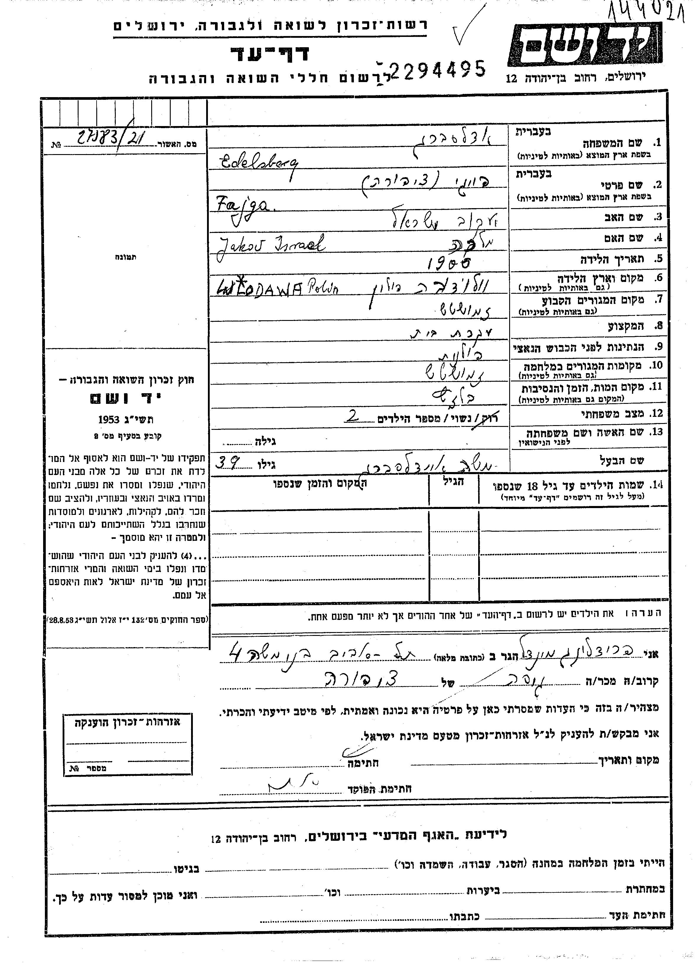 Яд Вашем - Листы свидетельских показаний Мемориального фонда