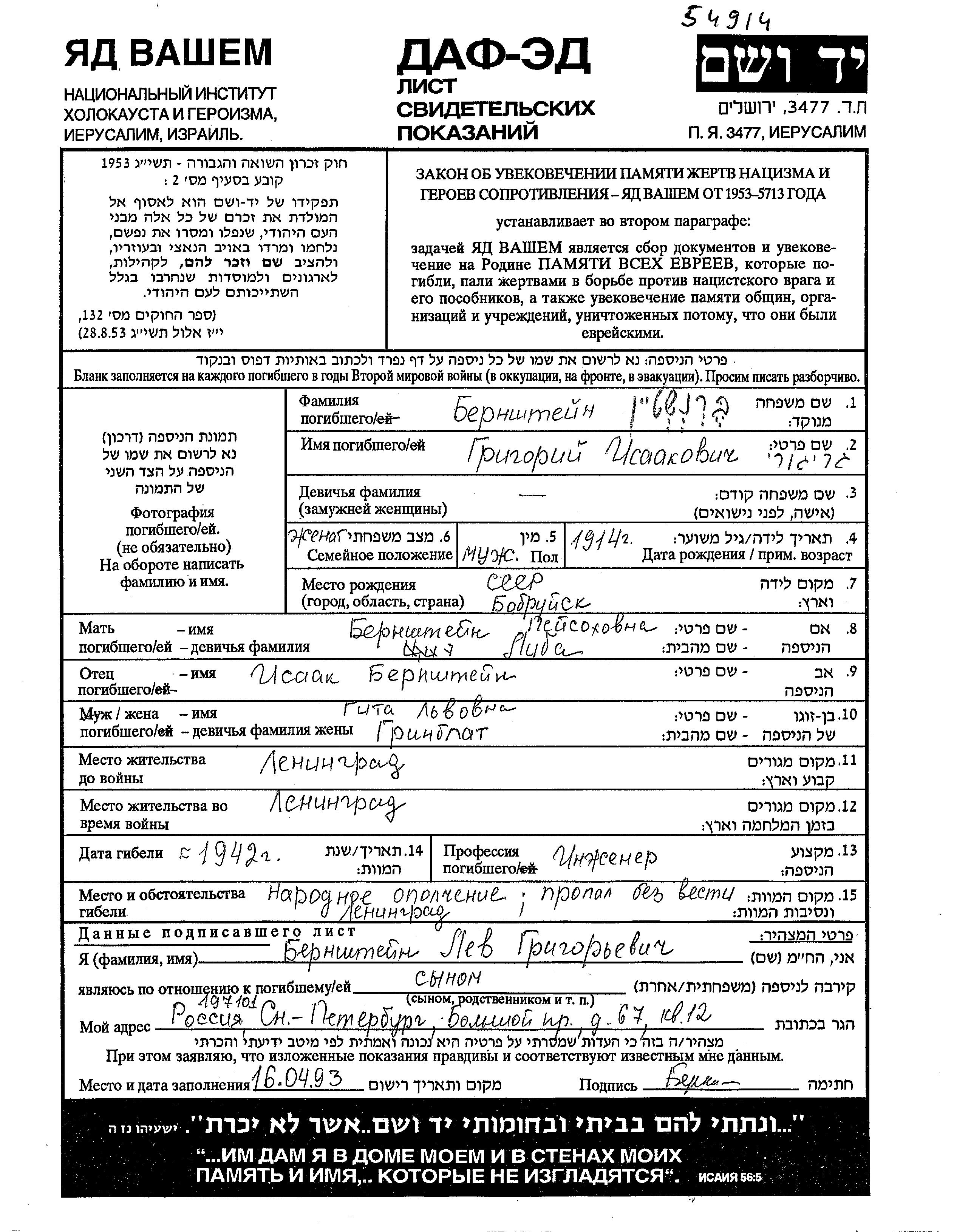 Поиск подателя Листа свидетельских показаний. Поиск по любому имени, включая уменьшительное или прозвище