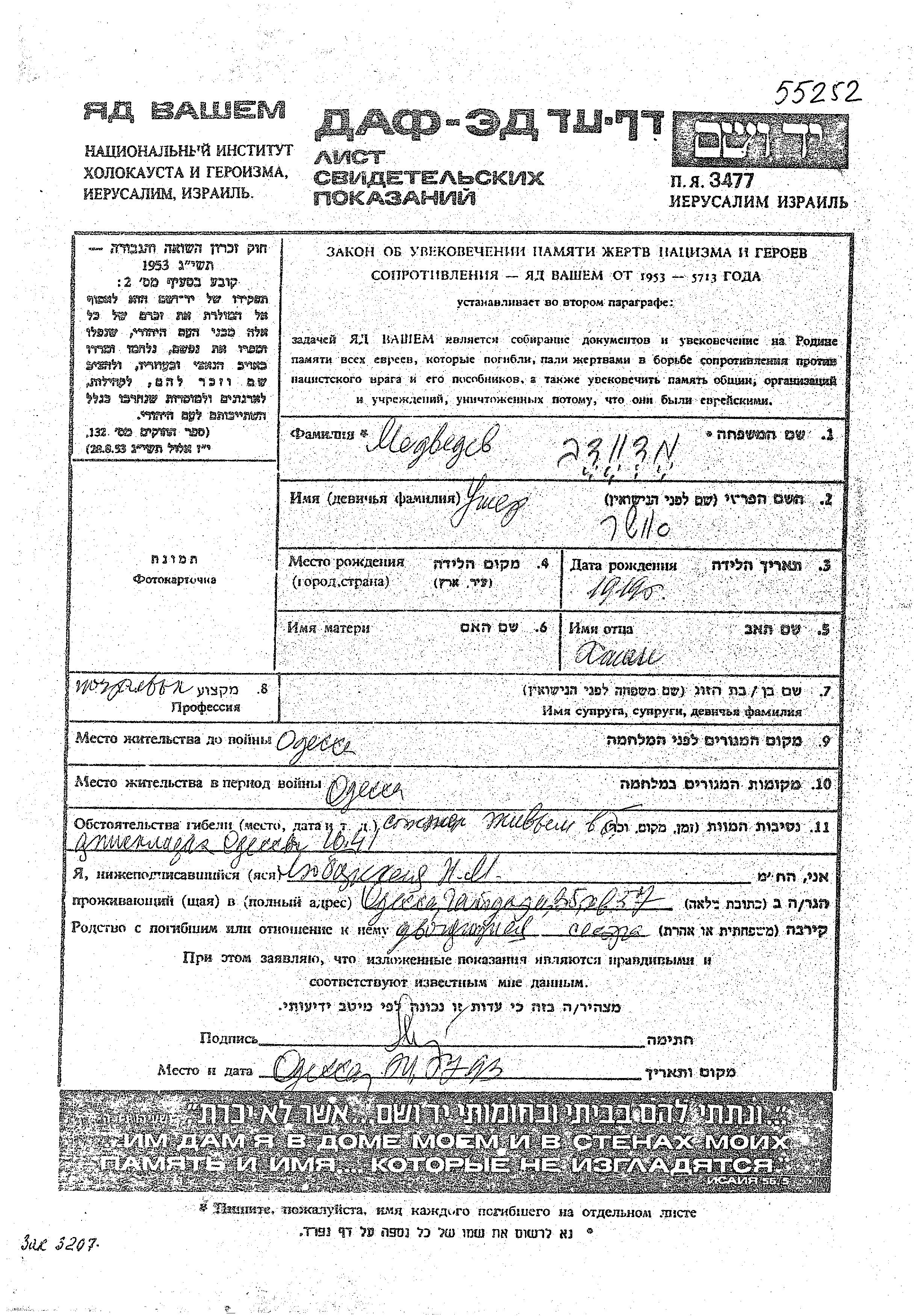 Поиск подателя Листа свидетельских показаний. Поиск по любому имени, включая уменьшительное или прозвище