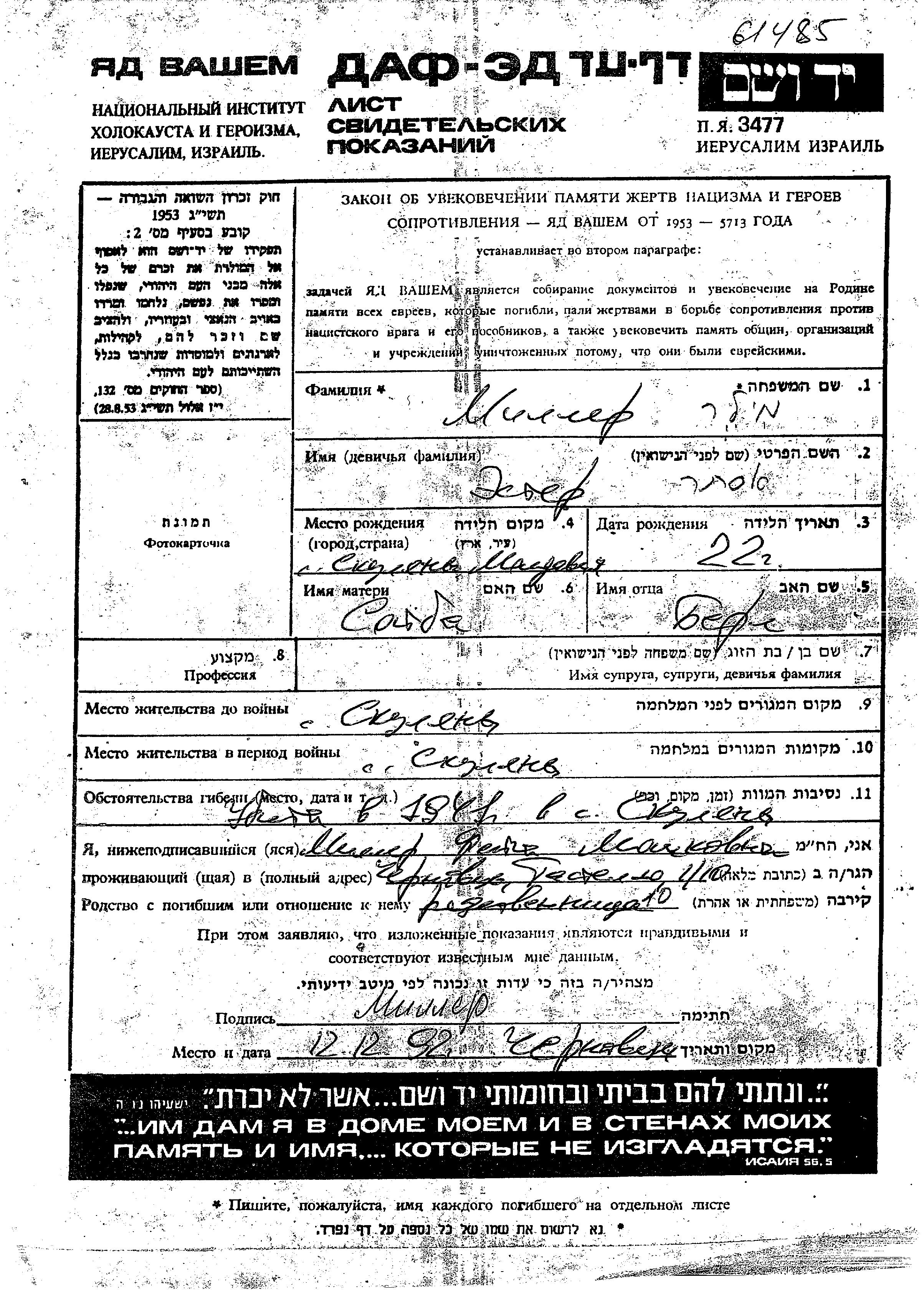 Яд Вашем - Листы свидетельских показаний Мемориального фонда