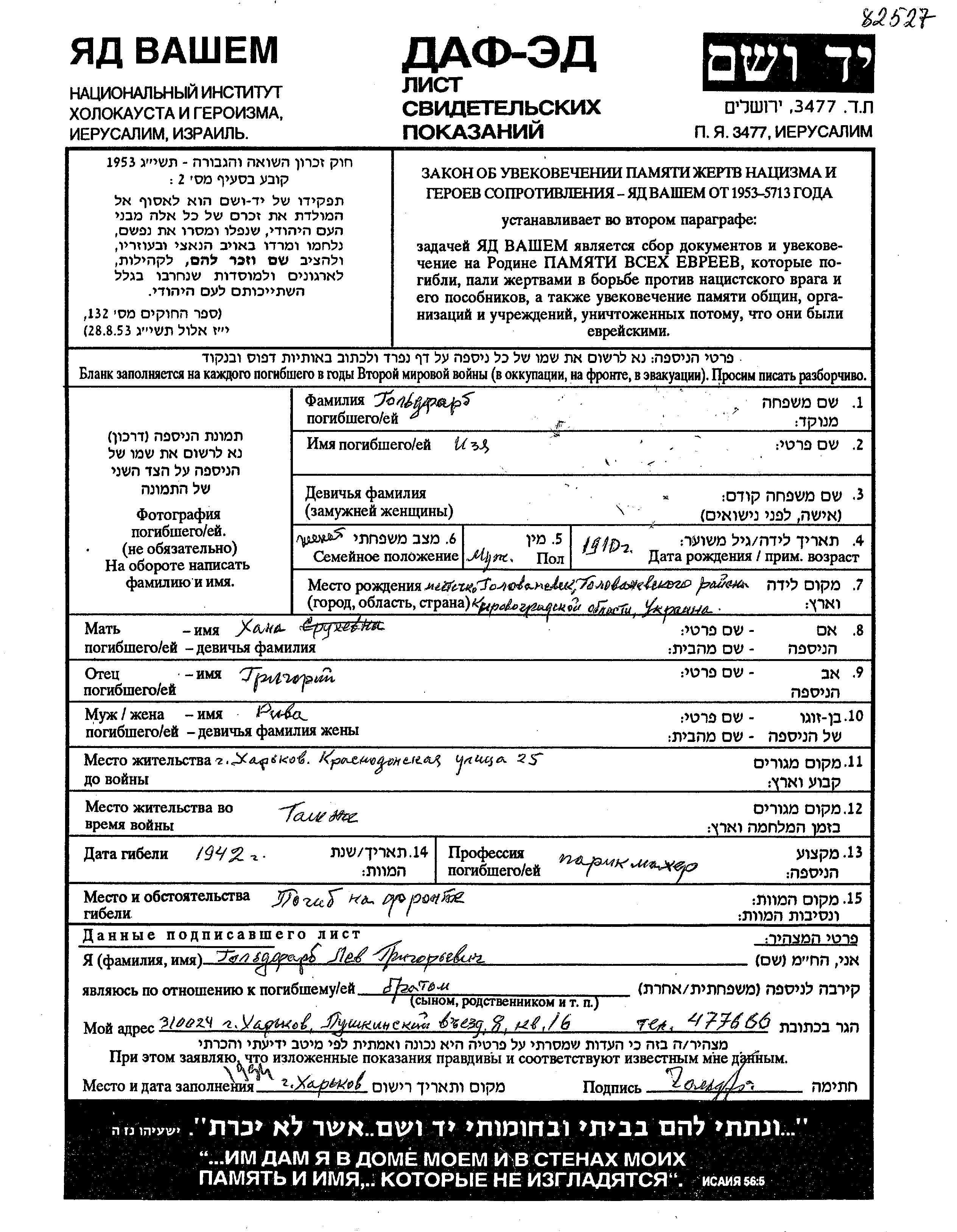 Поиск подателя Листа свидетельских показаний. Поиск по любому имени, включая уменьшительное или прозвище
