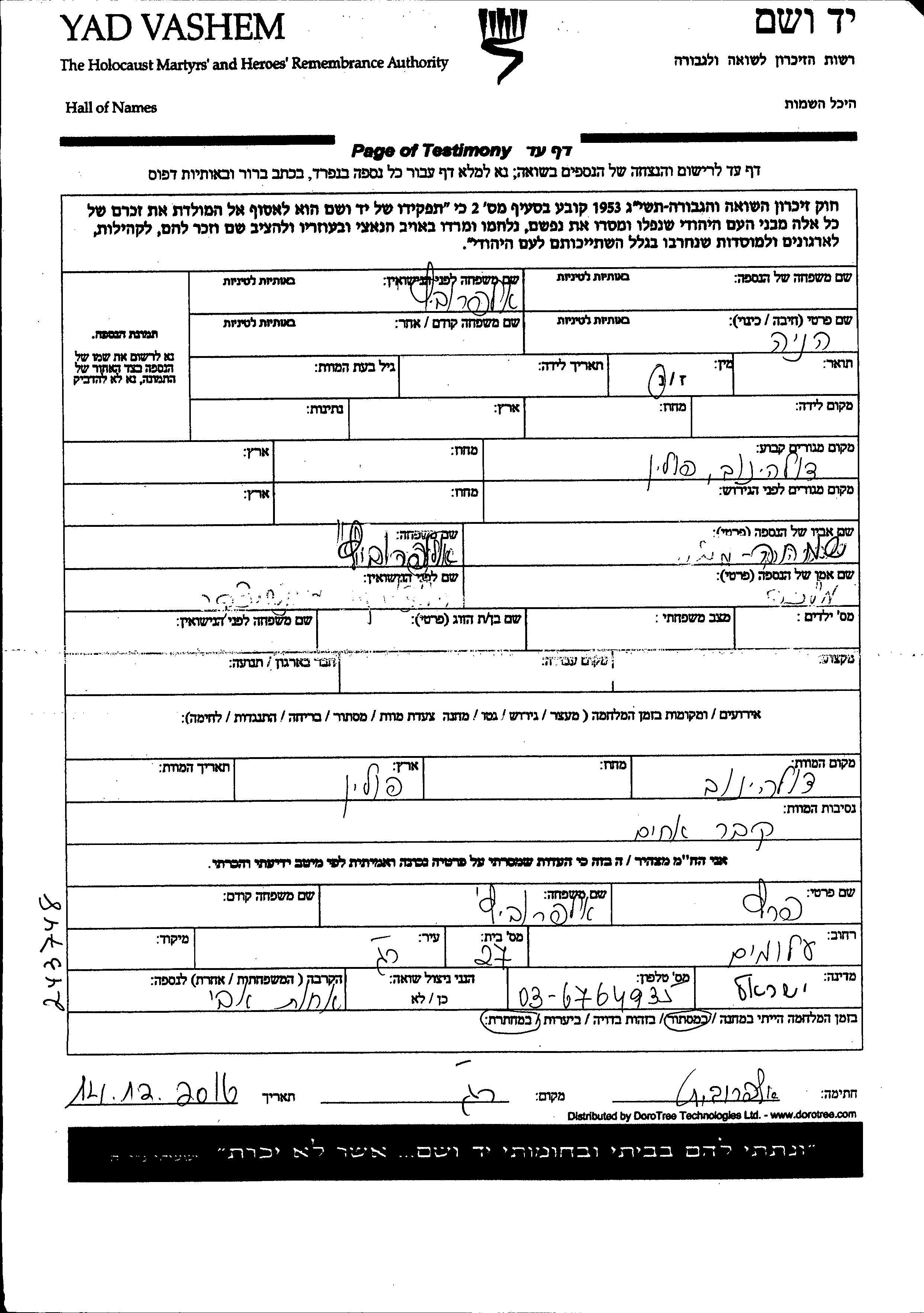 Яд Вашем - Листы свидетельских показаний Мемориального фонда