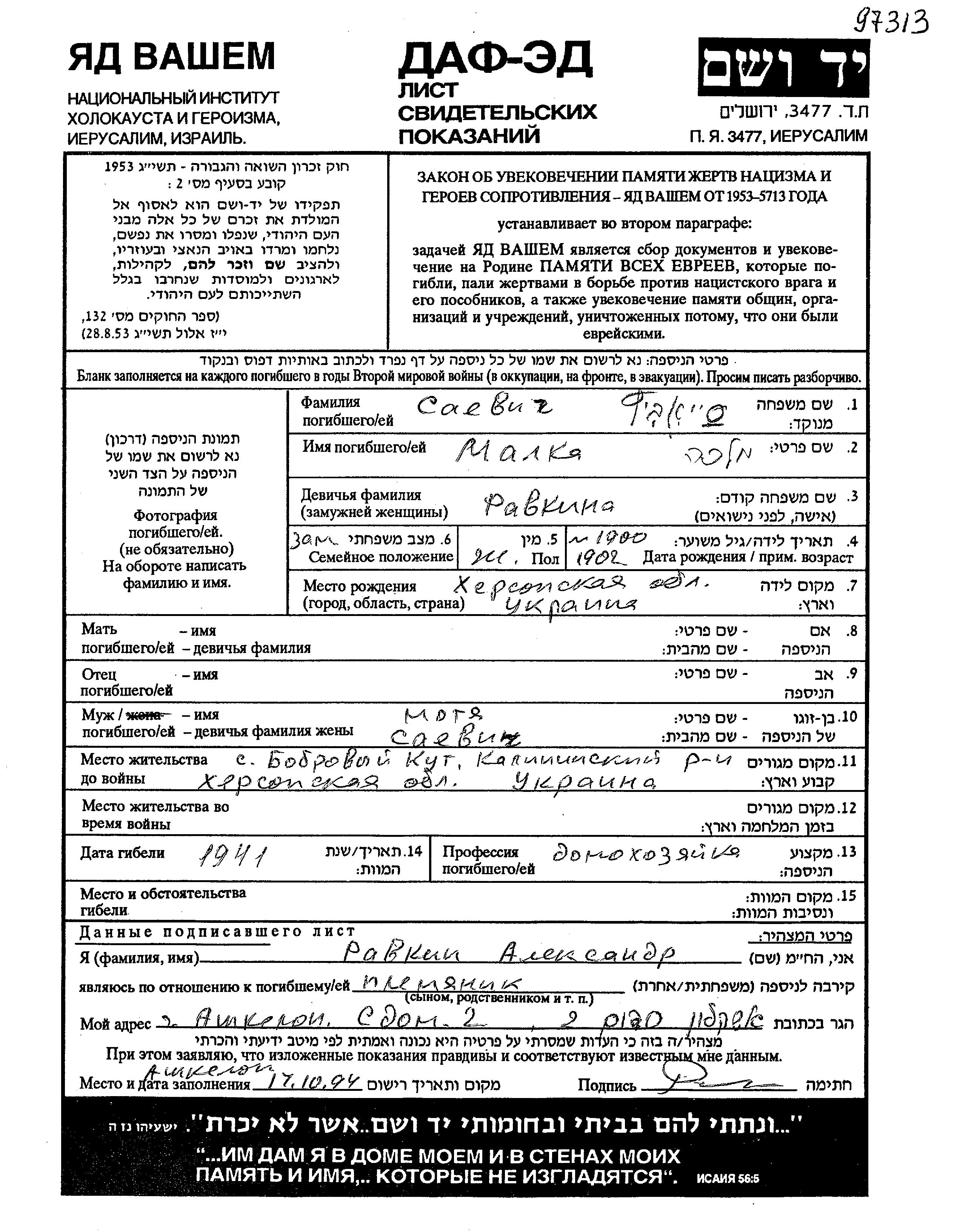 Поиск подателя Листа свидетельских показаний. Поиск по любому имени, включая уменьшительное или прозвище