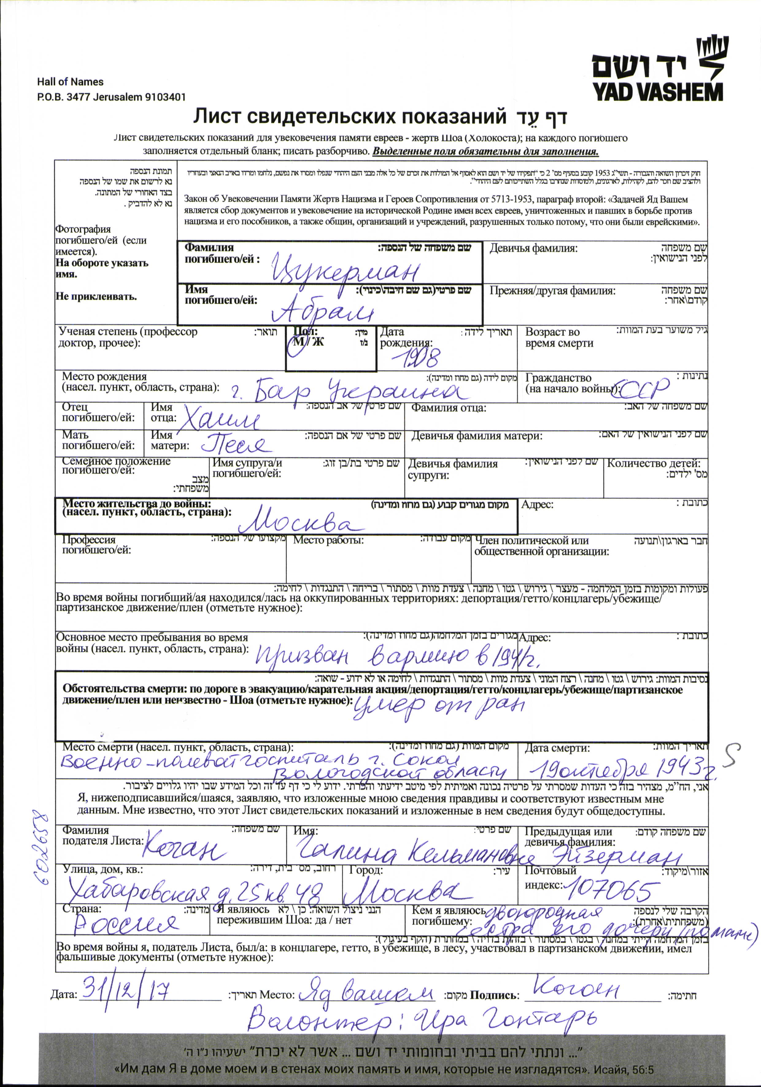 Среди погибших во Второй мировой войне солдат- евреев, особенно служивших в рядах Красной Армии, десятки тысяч, попав в плен, были выделены в отдельную группу как евреи и убиты.