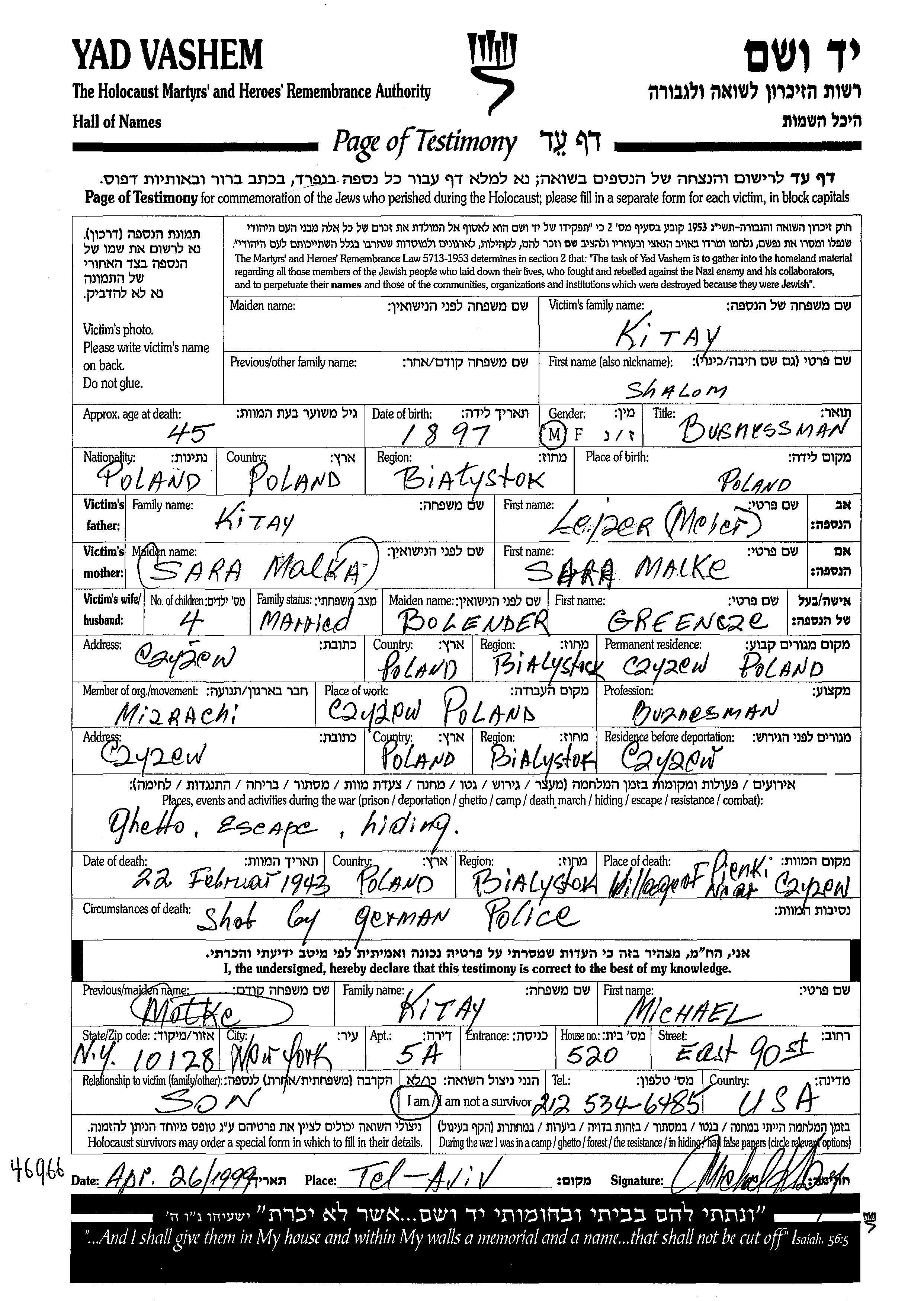 Во время Шоа: 1933-1945гг; точно или в диапазоне 2-5 лет