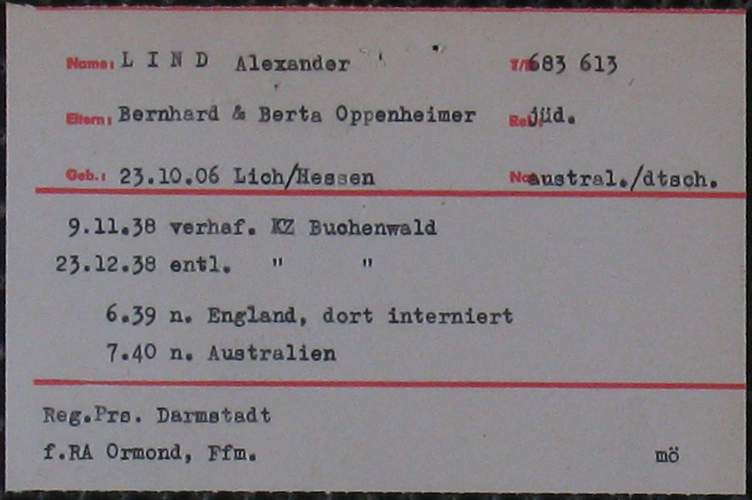 ITS card file: Lind Alexander
