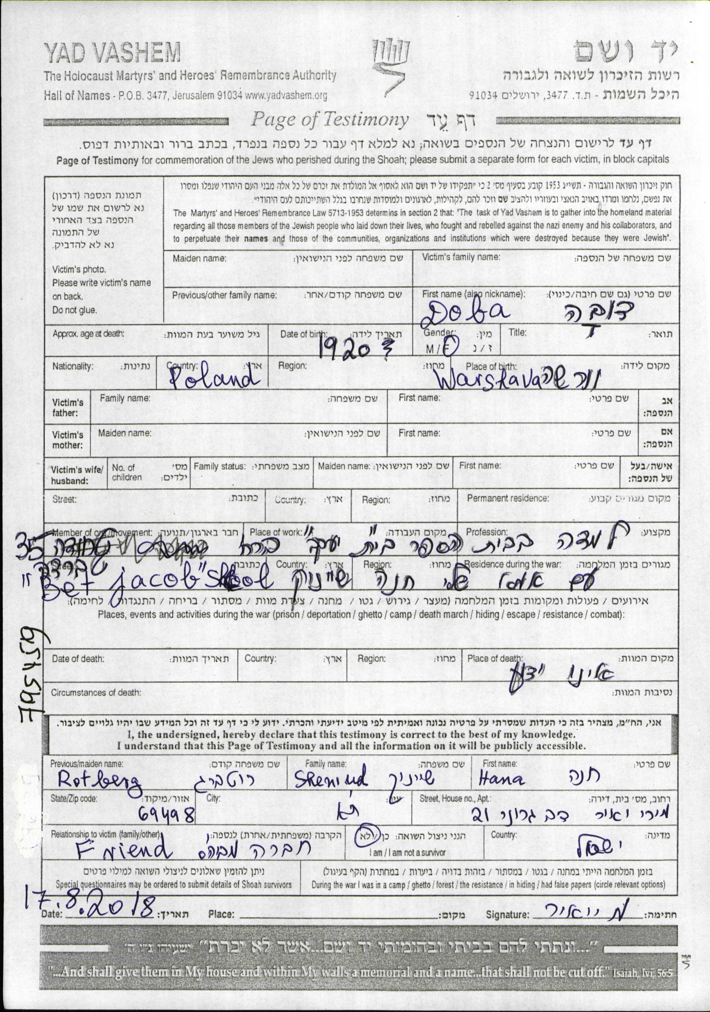 Яд Вашем - Листы свидетельских показаний Мемориального фонда