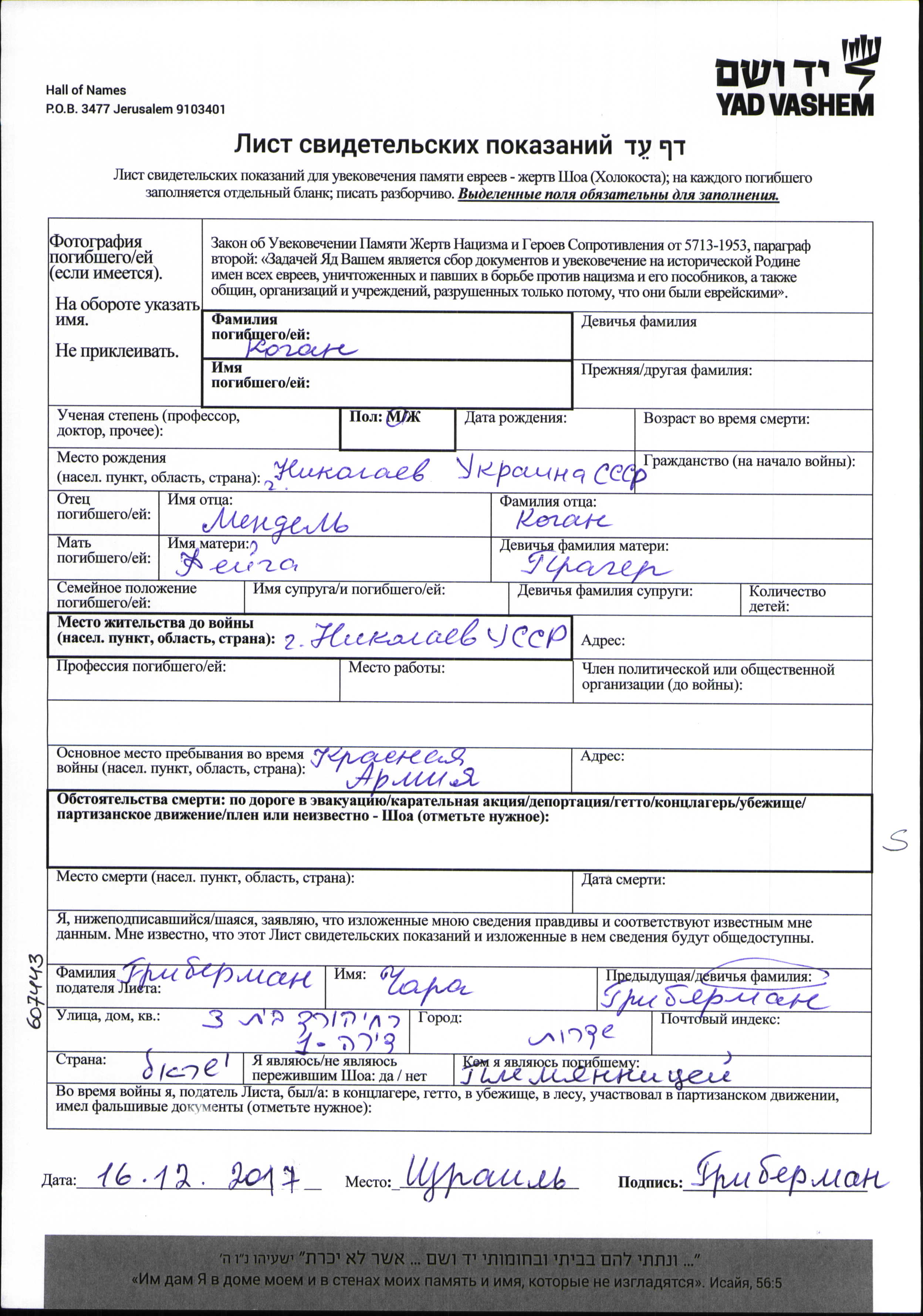 Во время войны/Шоа: