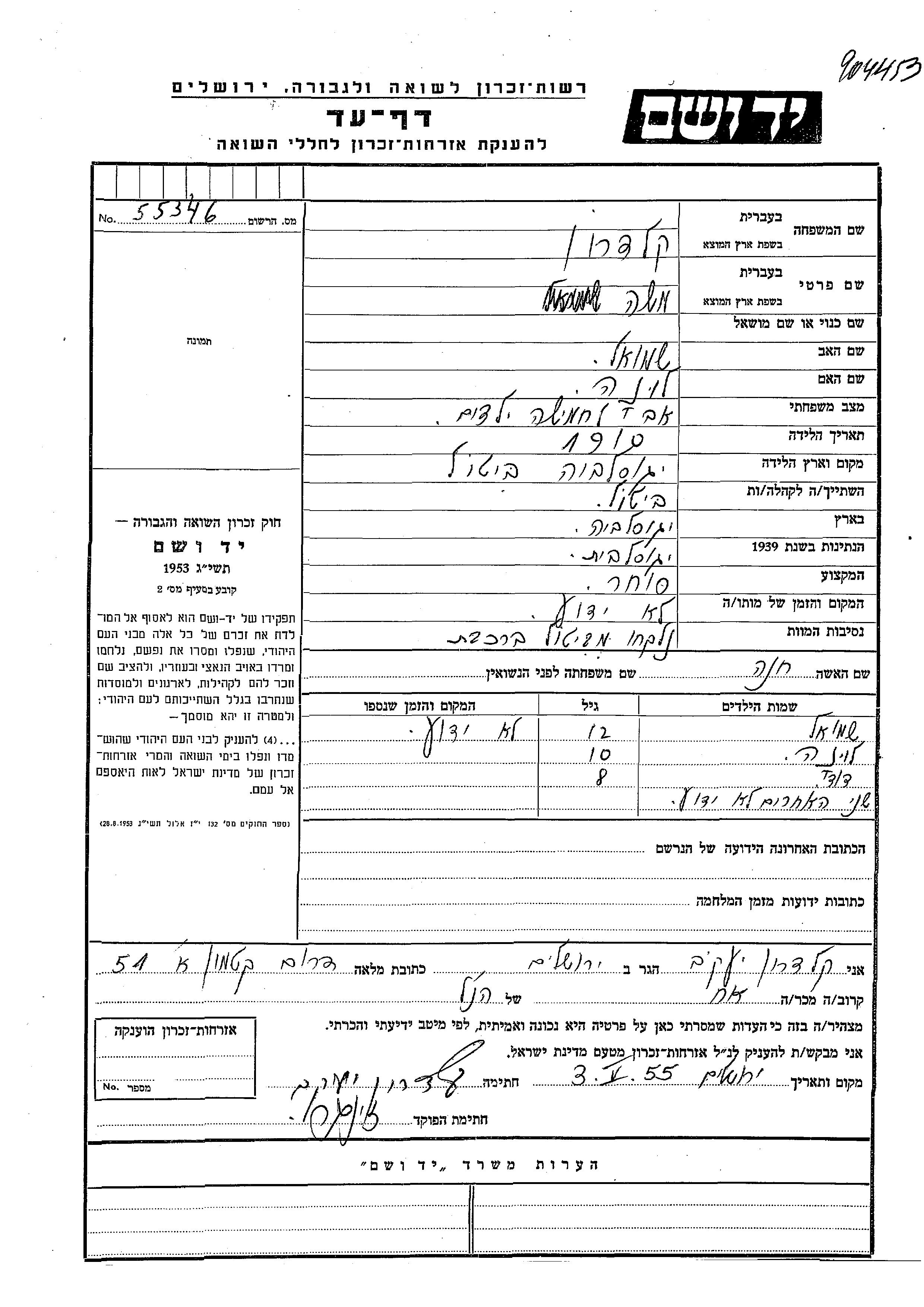 Яд Вашем - Листы свидетельских показаний Мемориального фонда