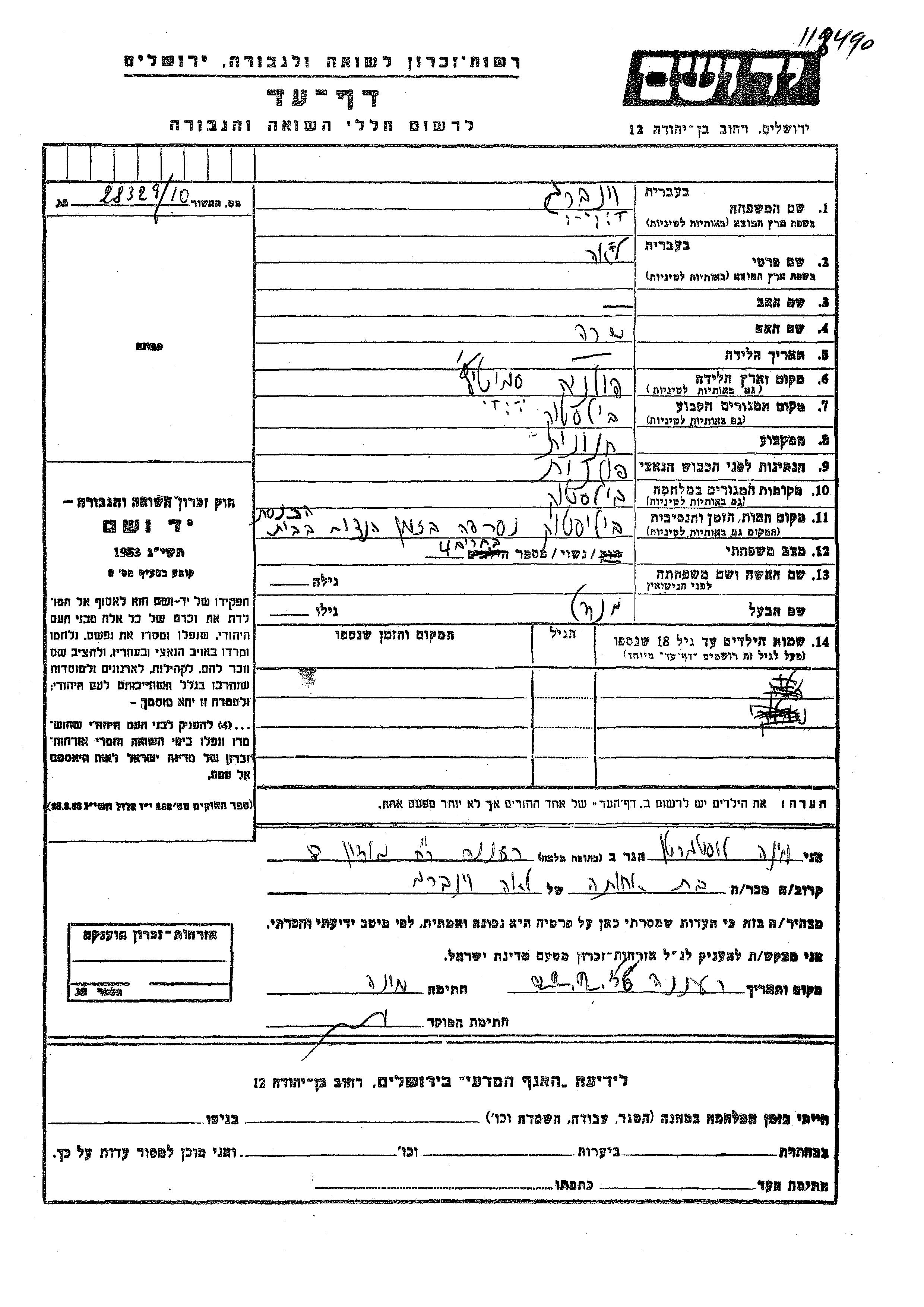 Яд Вашем - Листы свидетельских показаний Мемориального фонда