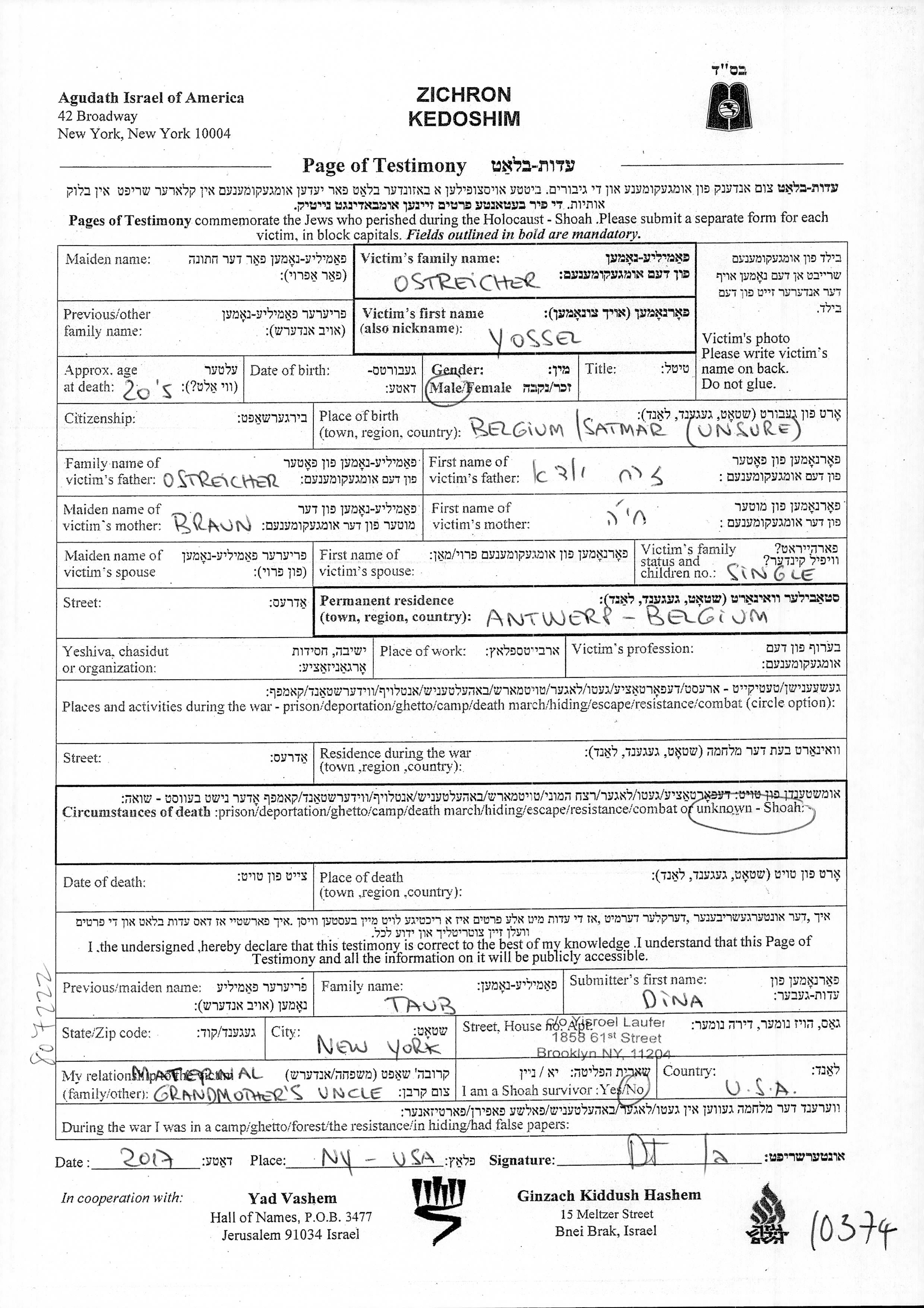 Поиск подателя Листа свидетельских показаний. Поиск по любому имени, включая уменьшительное или прозвище