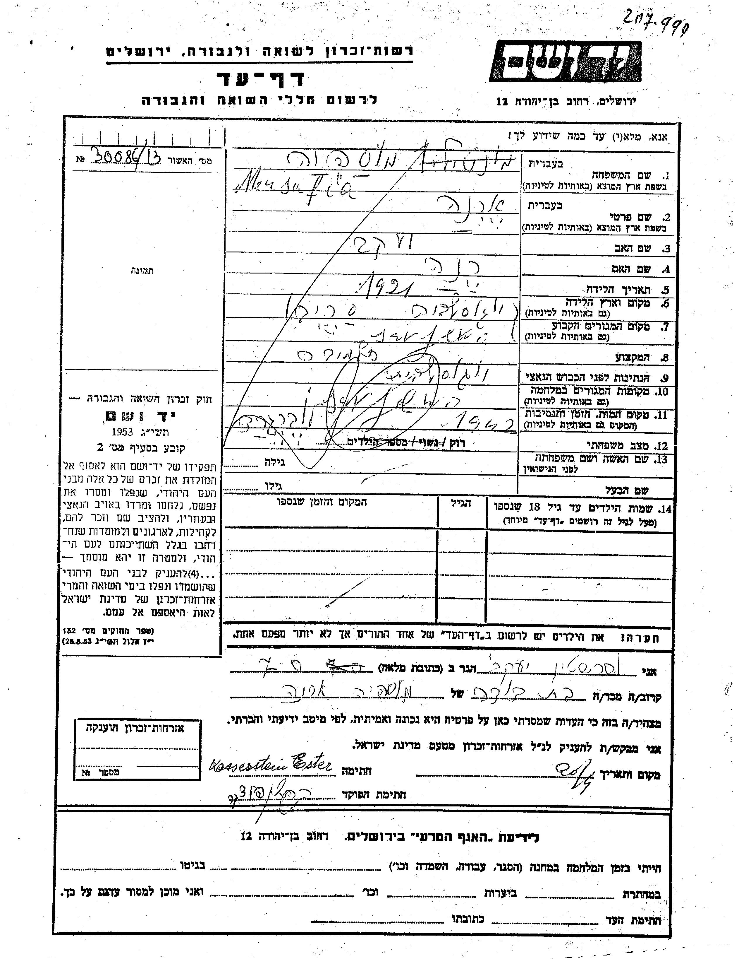 Яд Вашем - Листы свидетельских показаний Мемориального фонда