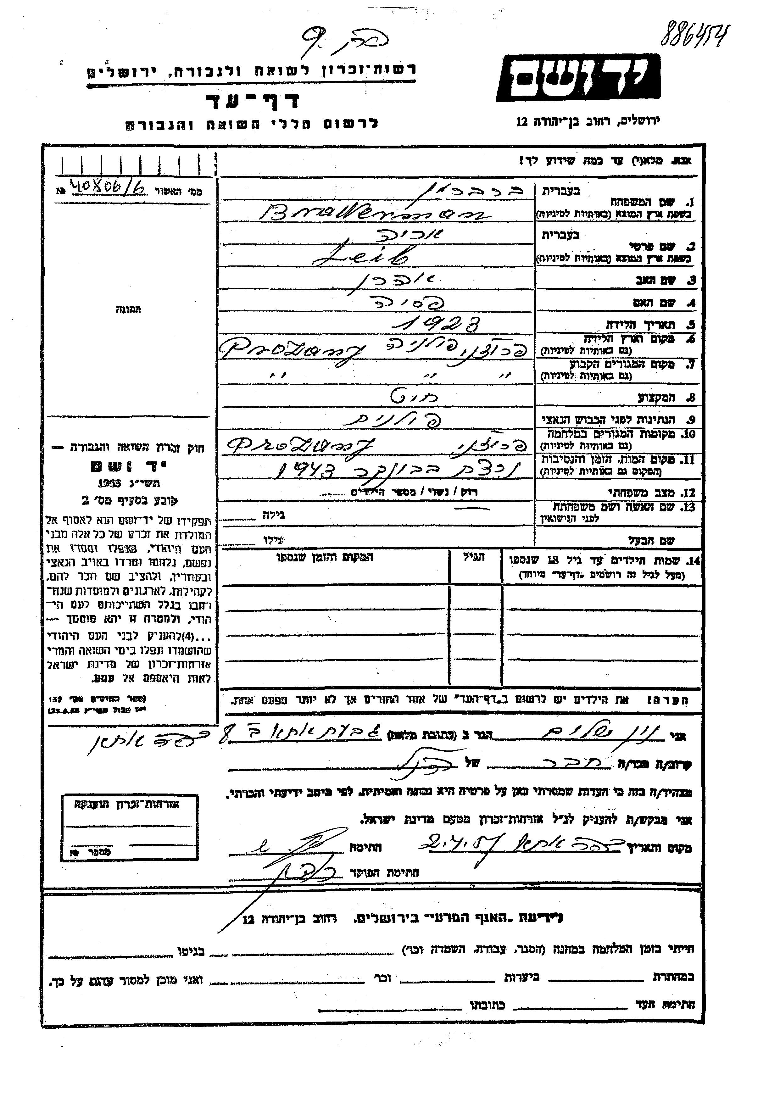 Яд Вашем - Листы свидетельских показаний Мемориального фонда