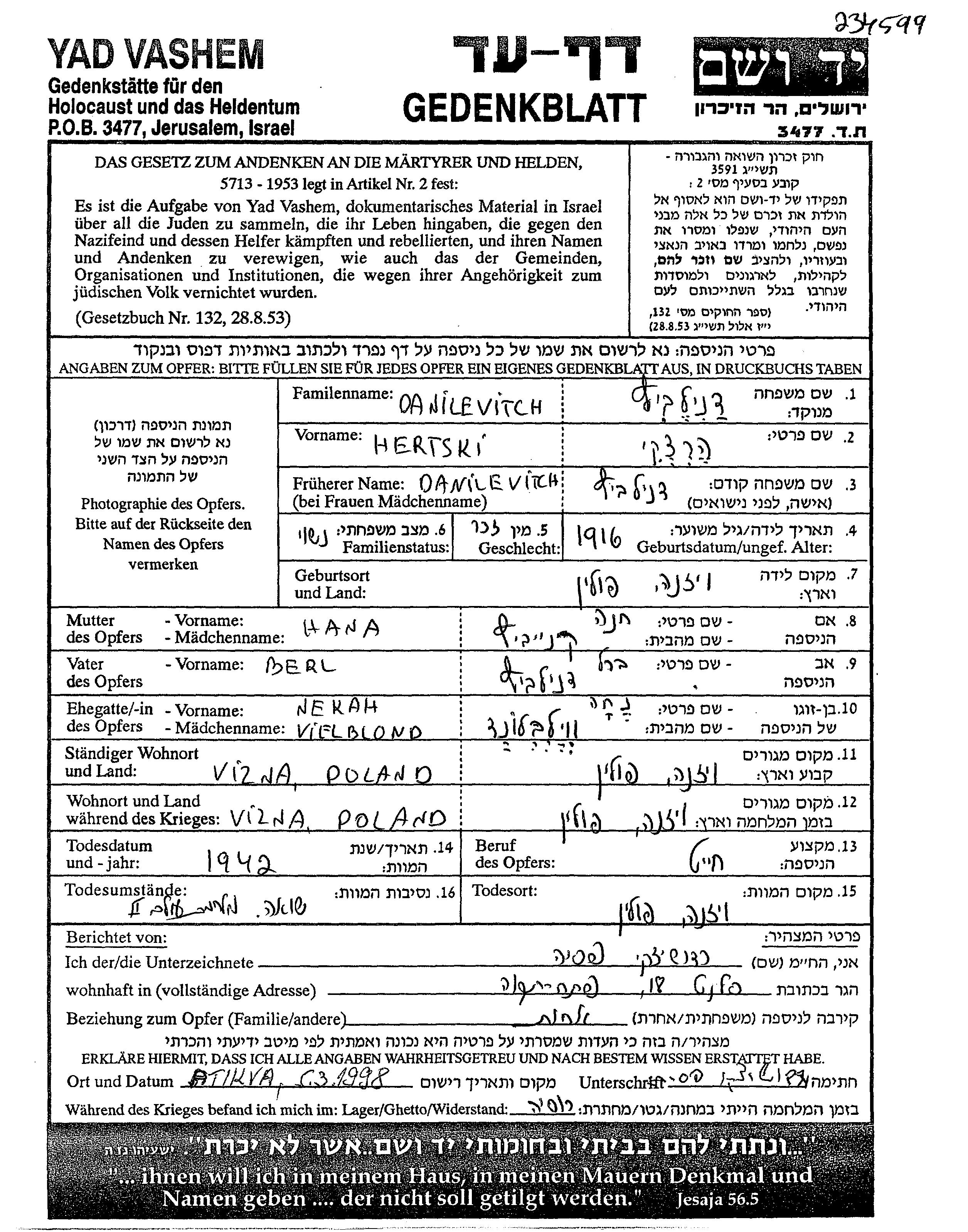 Яд Вашем - Листы свидетельских показаний Мемориального фонда