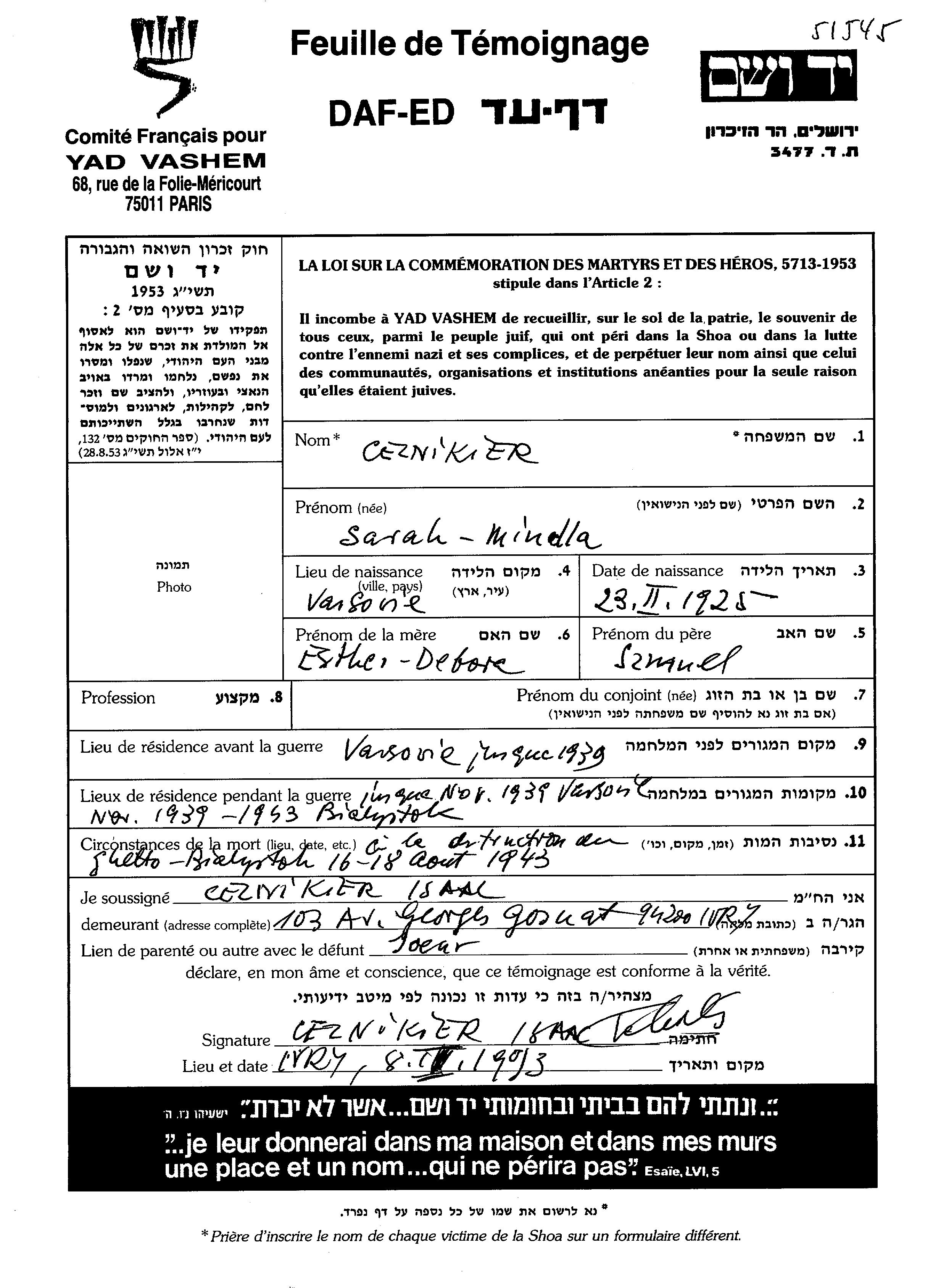 Во время войны/Шоа: