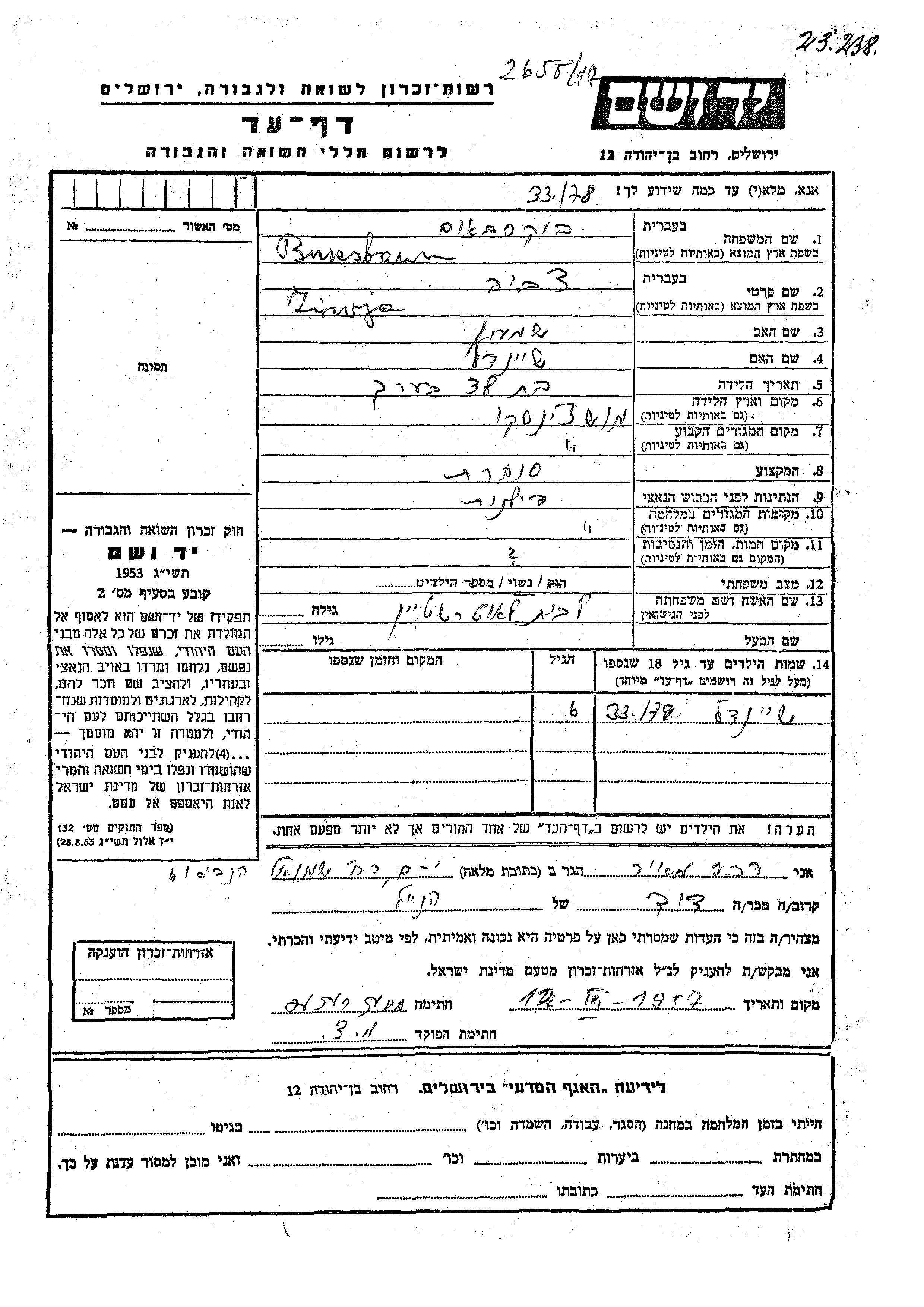 Буксбаум Цвия место не указано, Лист свидетельских показаний
