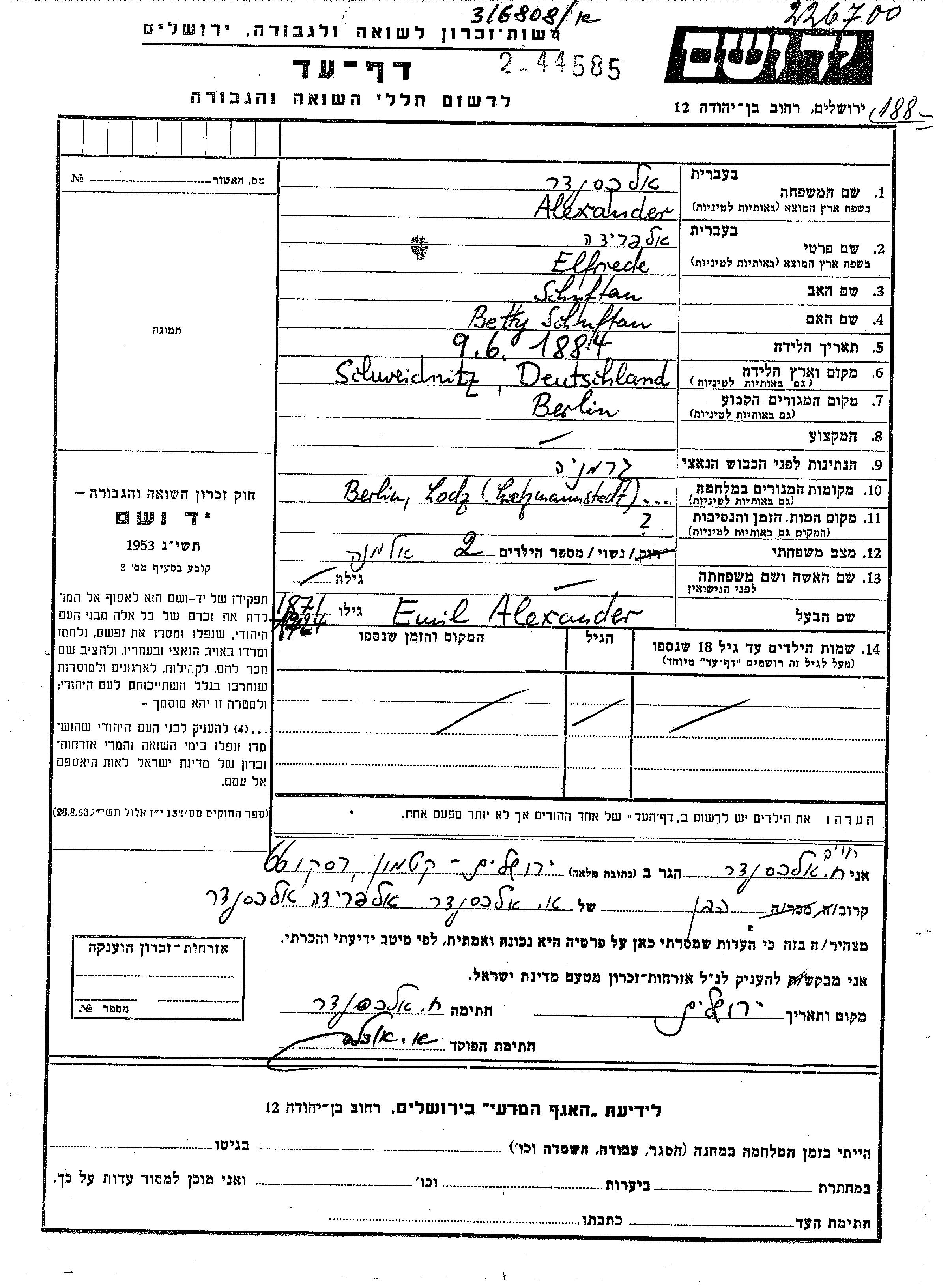 Яд Вашем - Листы свидетельских показаний Мемориального фонда