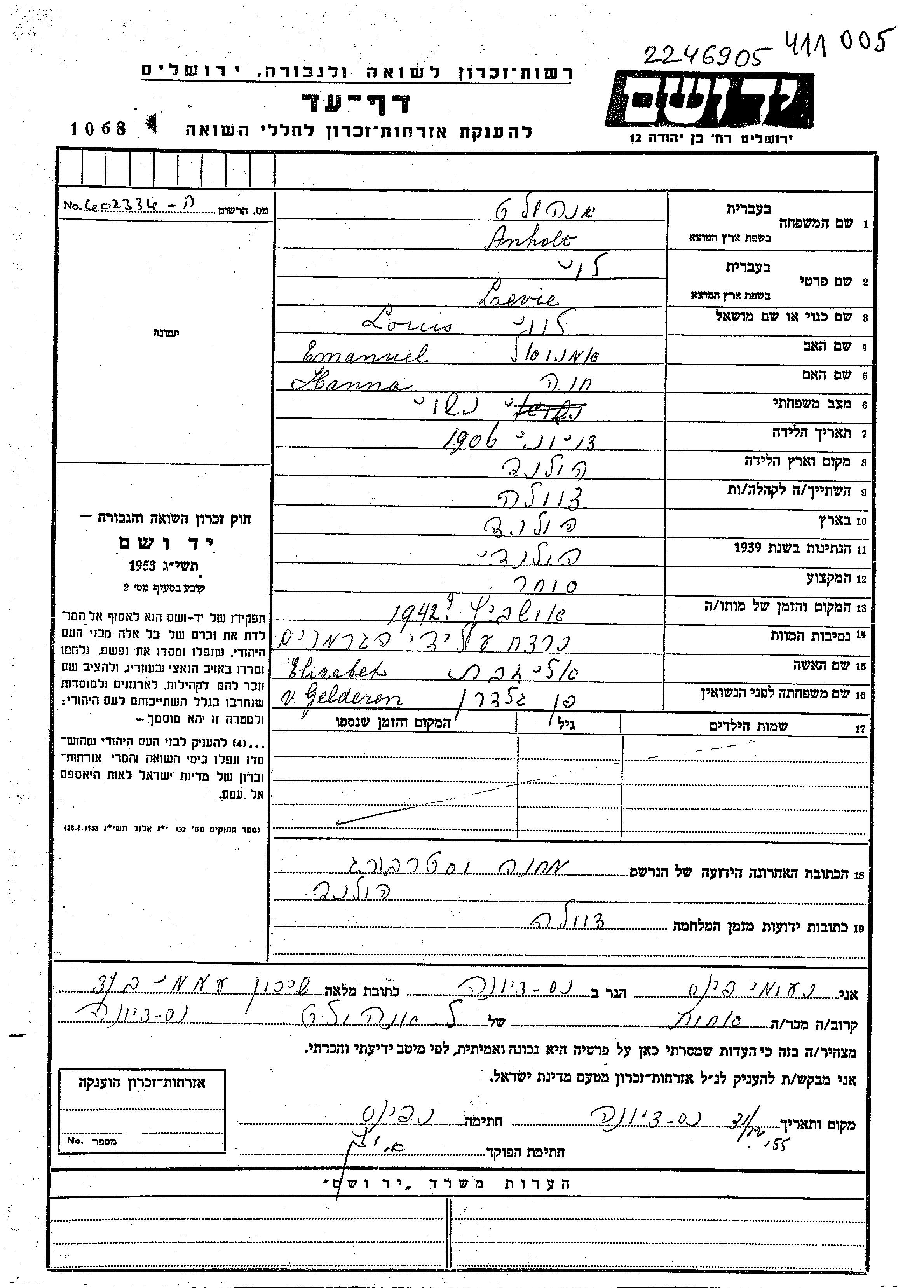 Анхольт | Леви | 1906 | Зволле, Нидерланды | Лист свидетельских показаний |