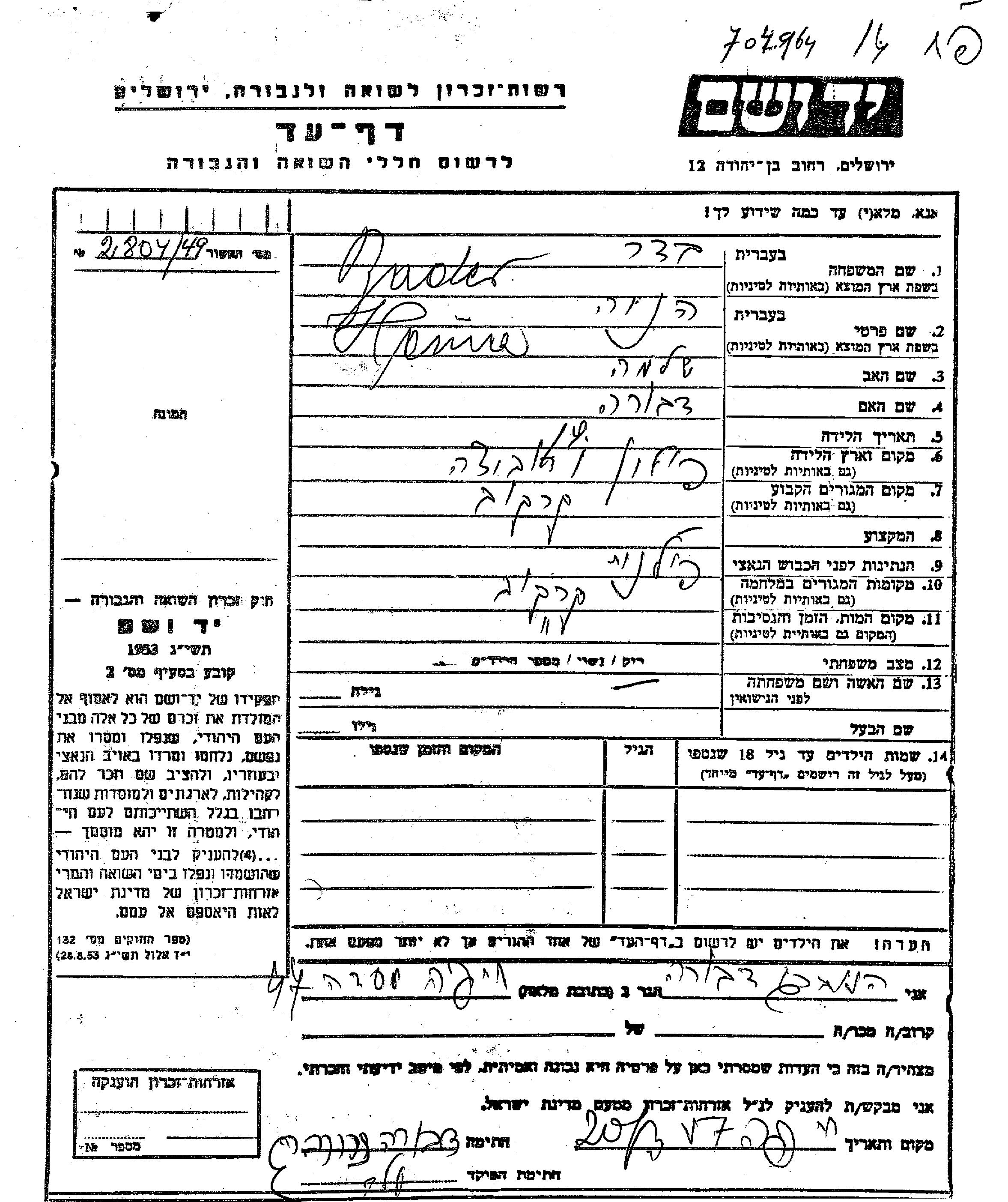 Яд Вашем - Листы свидетельских показаний Мемориального фонда