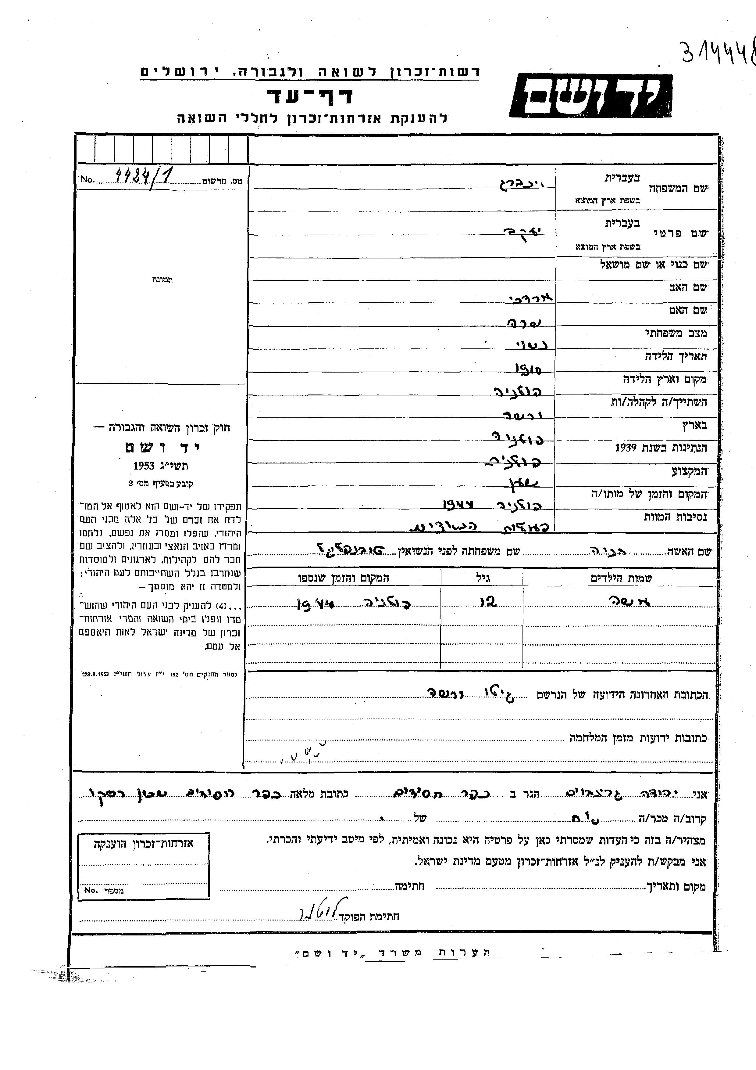 Яков уничтожен в период Шоа. место смерти: неизвестно в 1944.