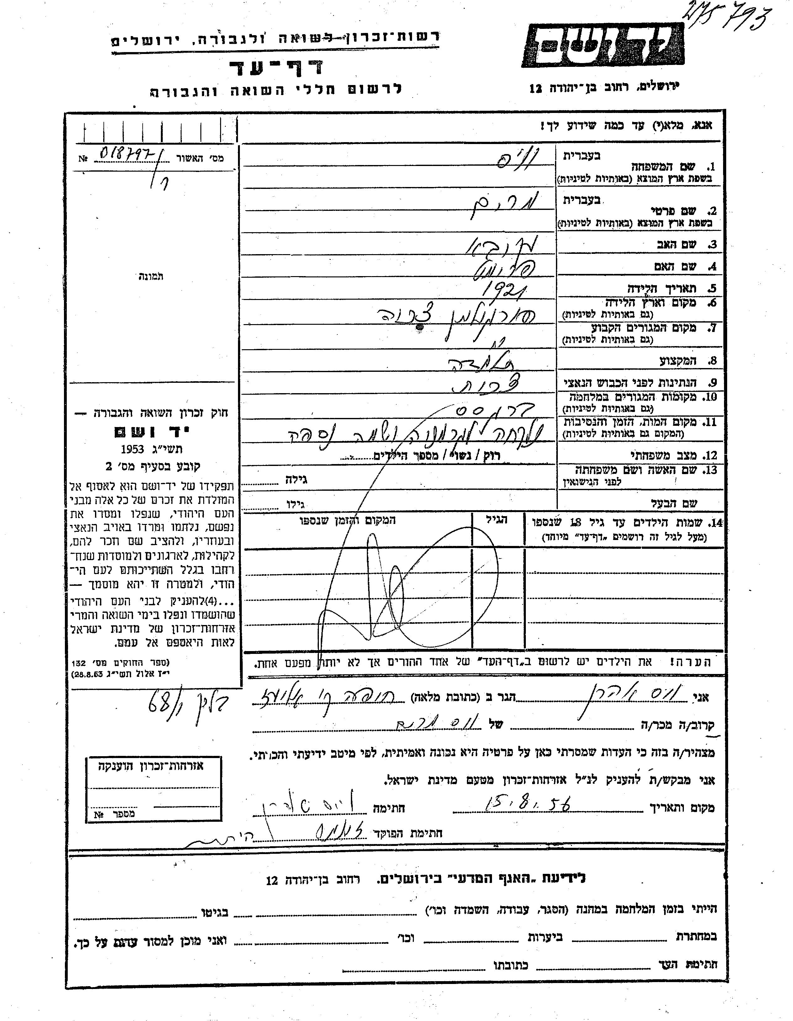 Яд Вашем - Листы свидетельских показаний Мемориального фонда