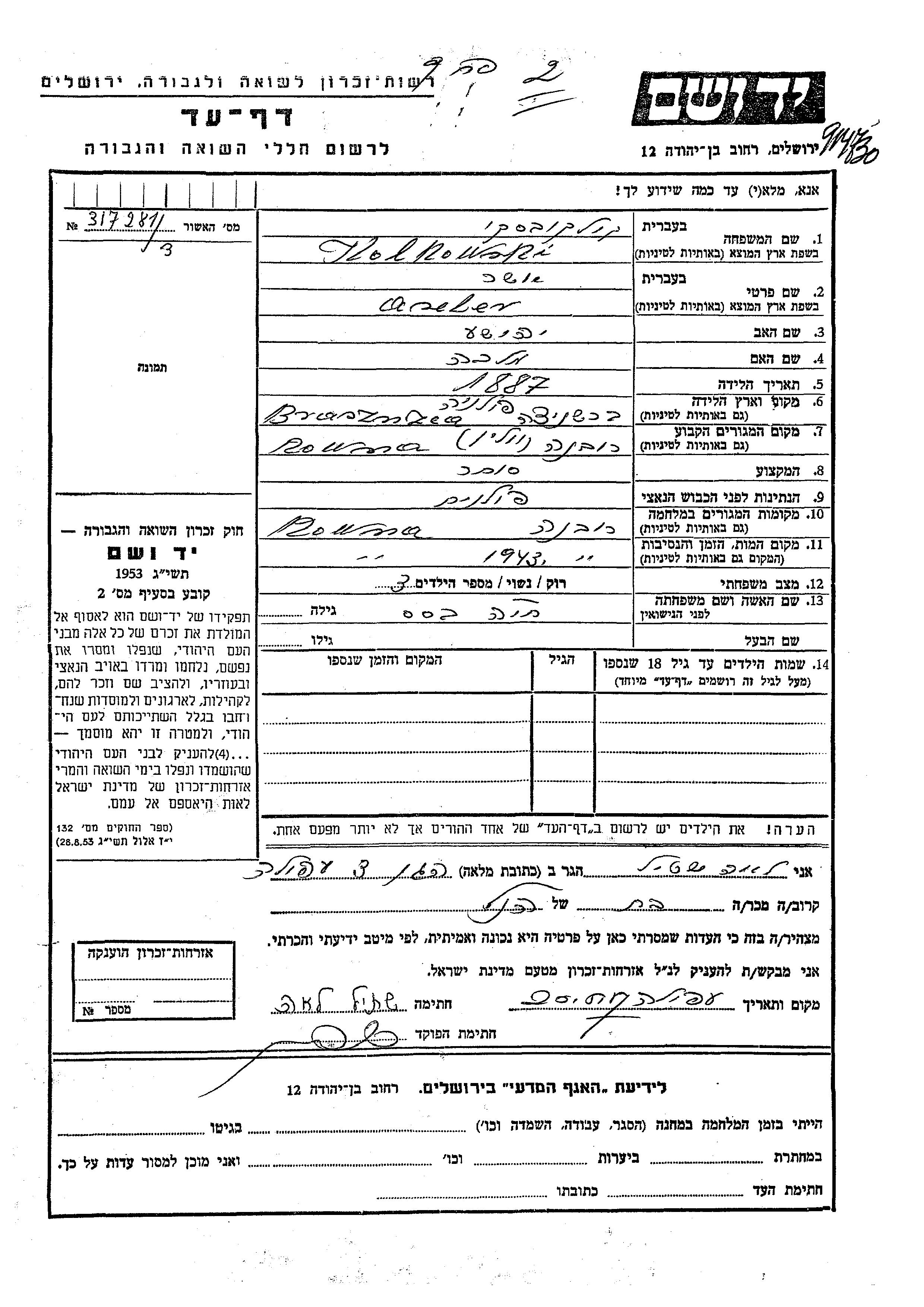 Яд Вашем - Листы свидетельских показаний Мемориального фонда