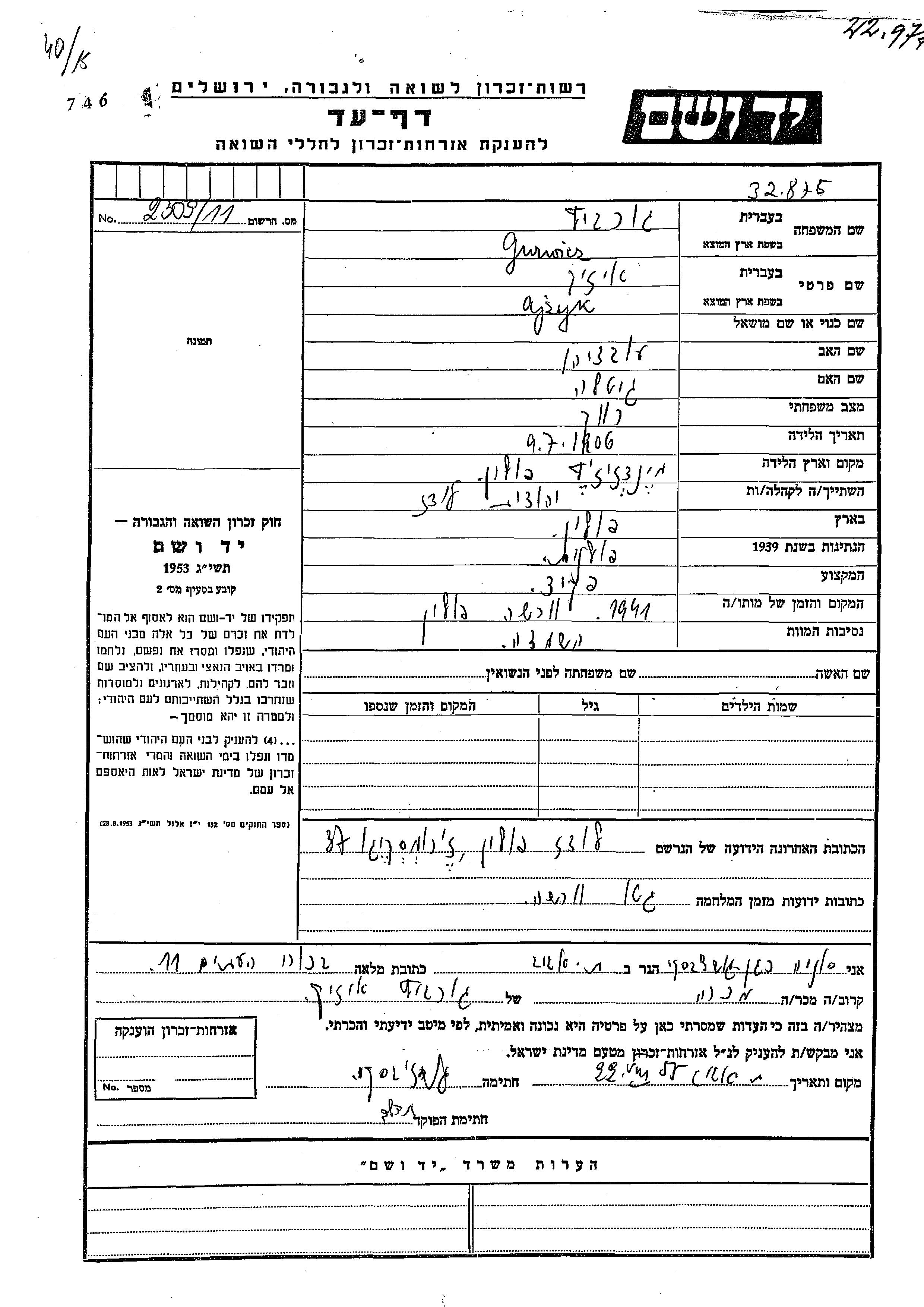 Яд Вашем - Листы свидетельских показаний Мемориального фонда