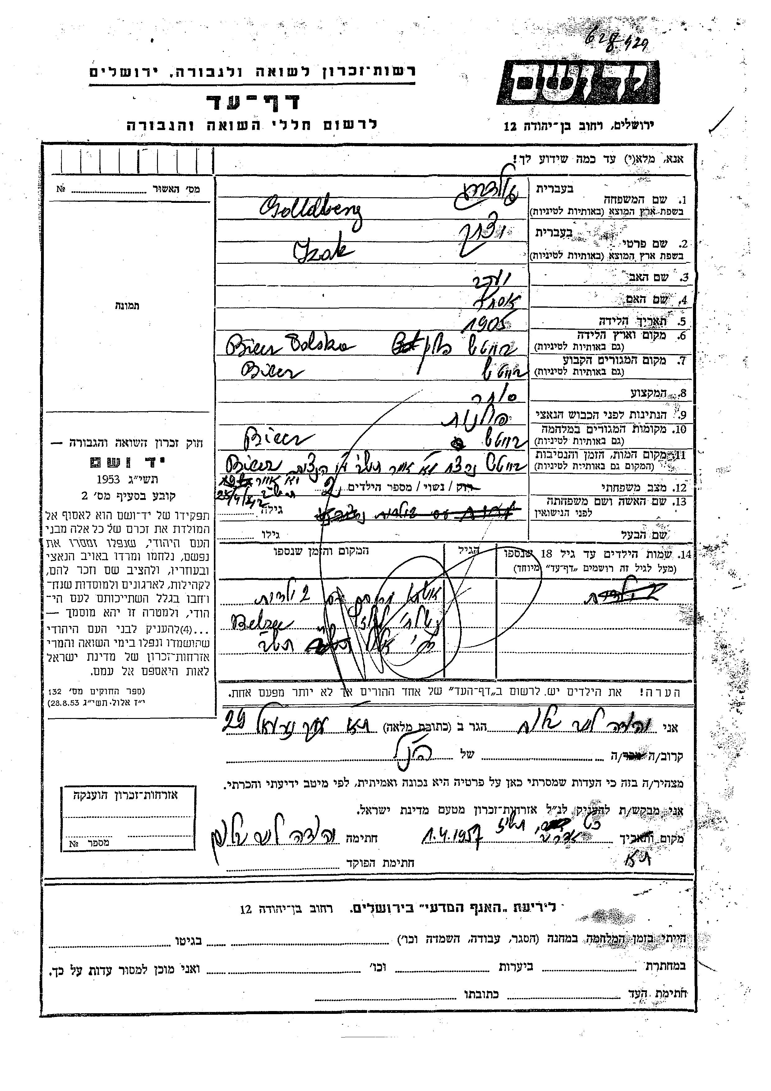 | Гольдберг | Изак | 1905 | Беч, Польша | Лист свидетельских показаний |
