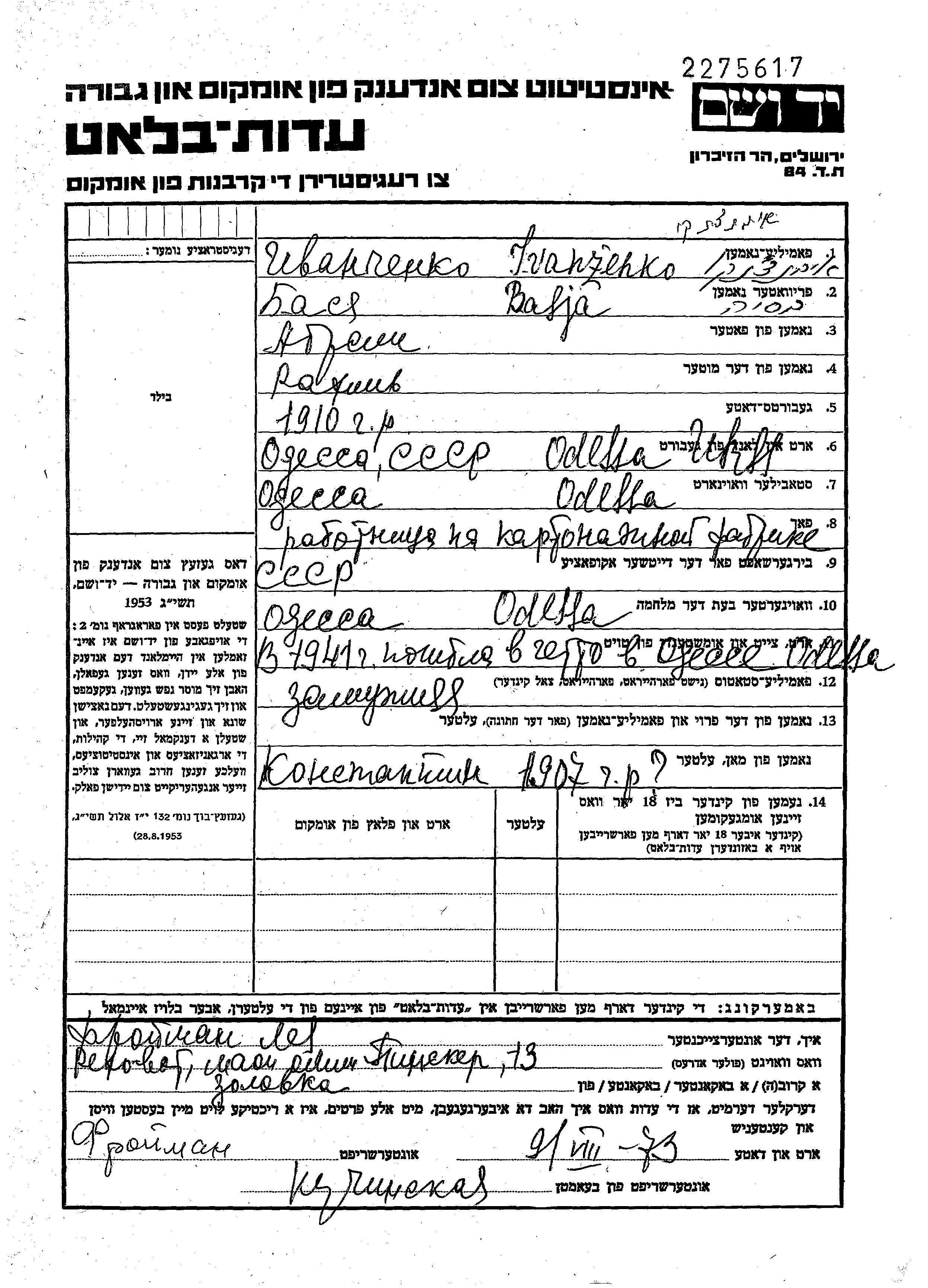Яд Вашем - Листы свидетельских показаний Мемориального фонда