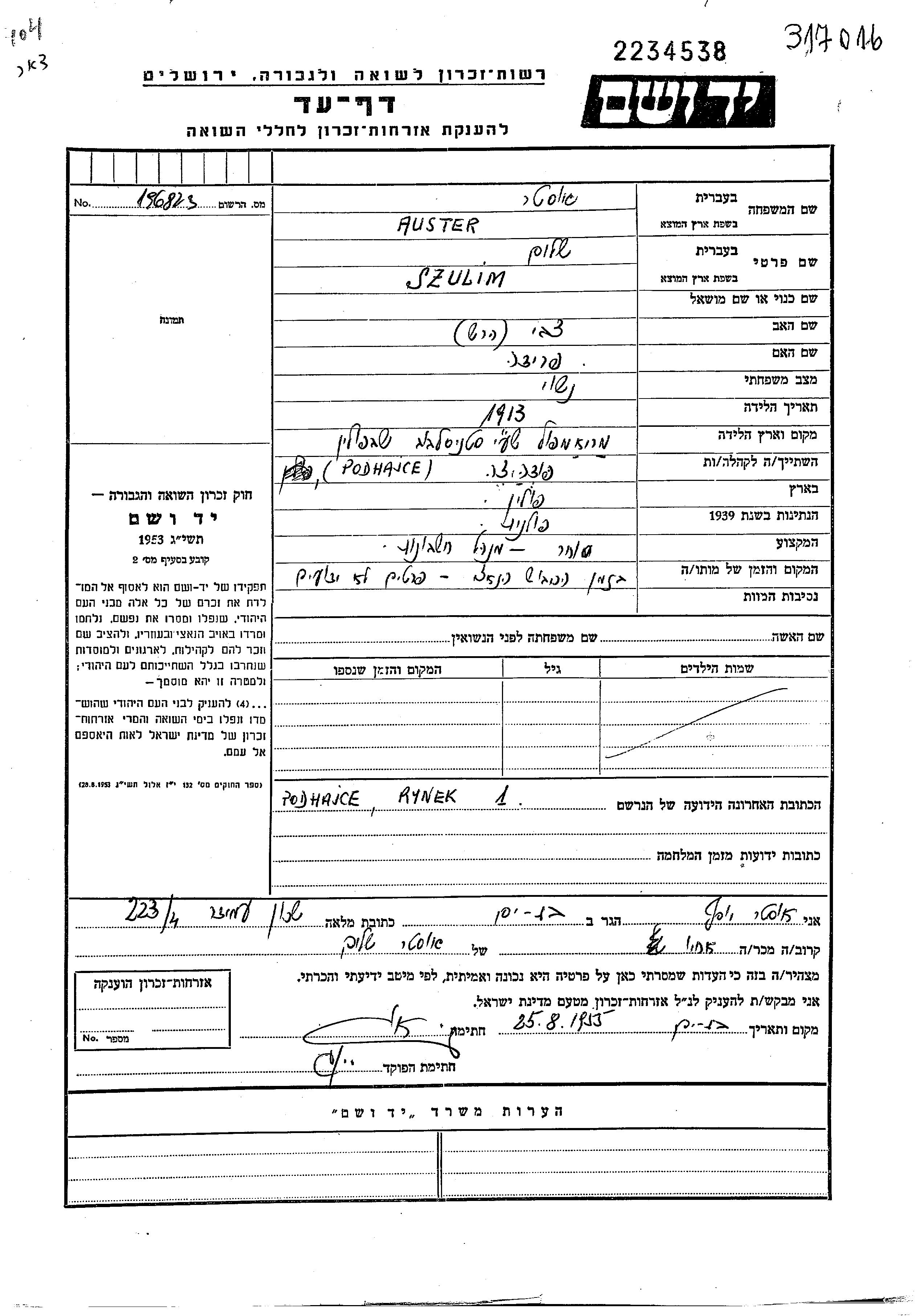 Яд Вашем - Листы свидетельских показаний Мемориального фонда