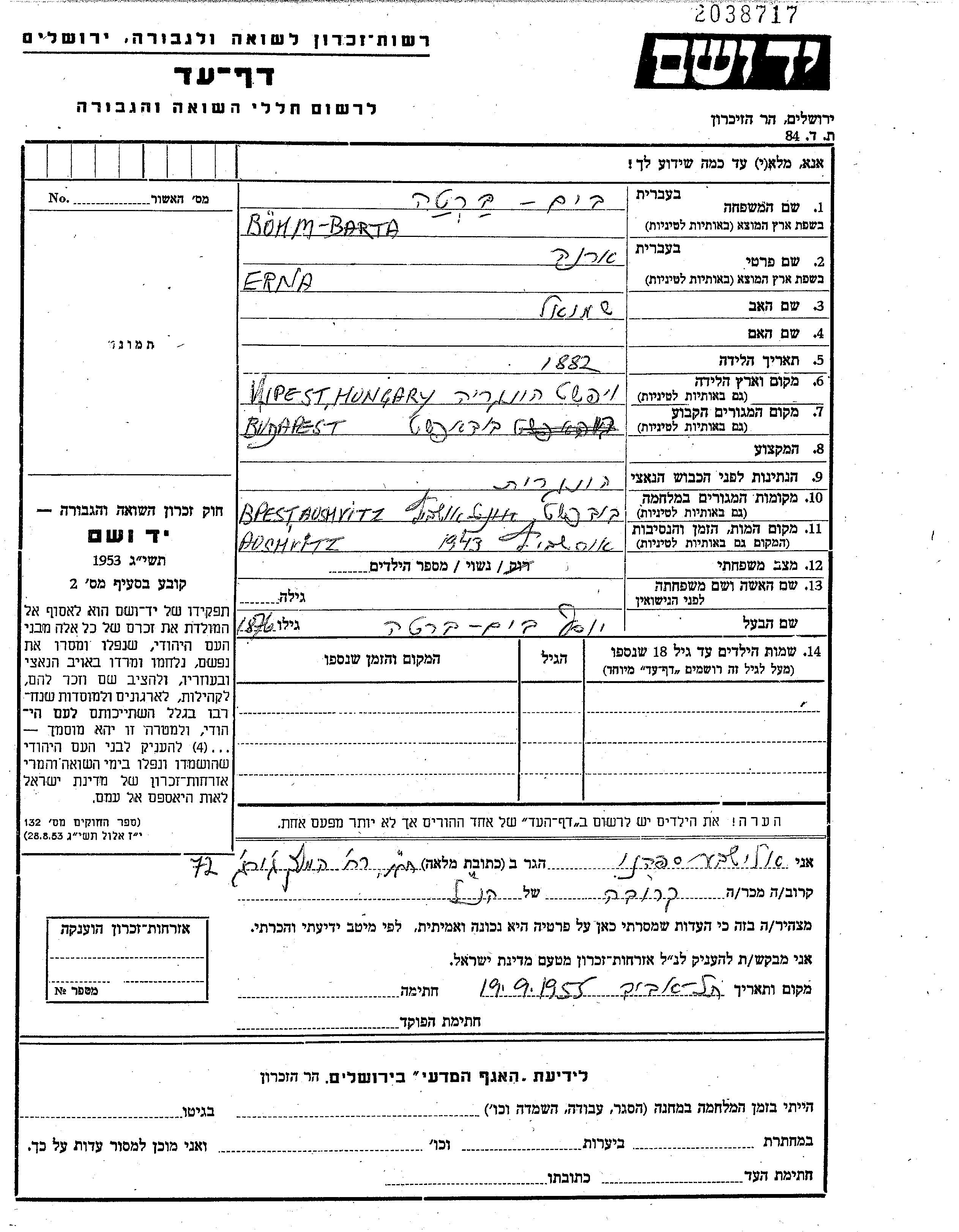 Бём Брате | Эрна | 1882 | Будапешт, Венгрия | Лист свидетельских показаний |