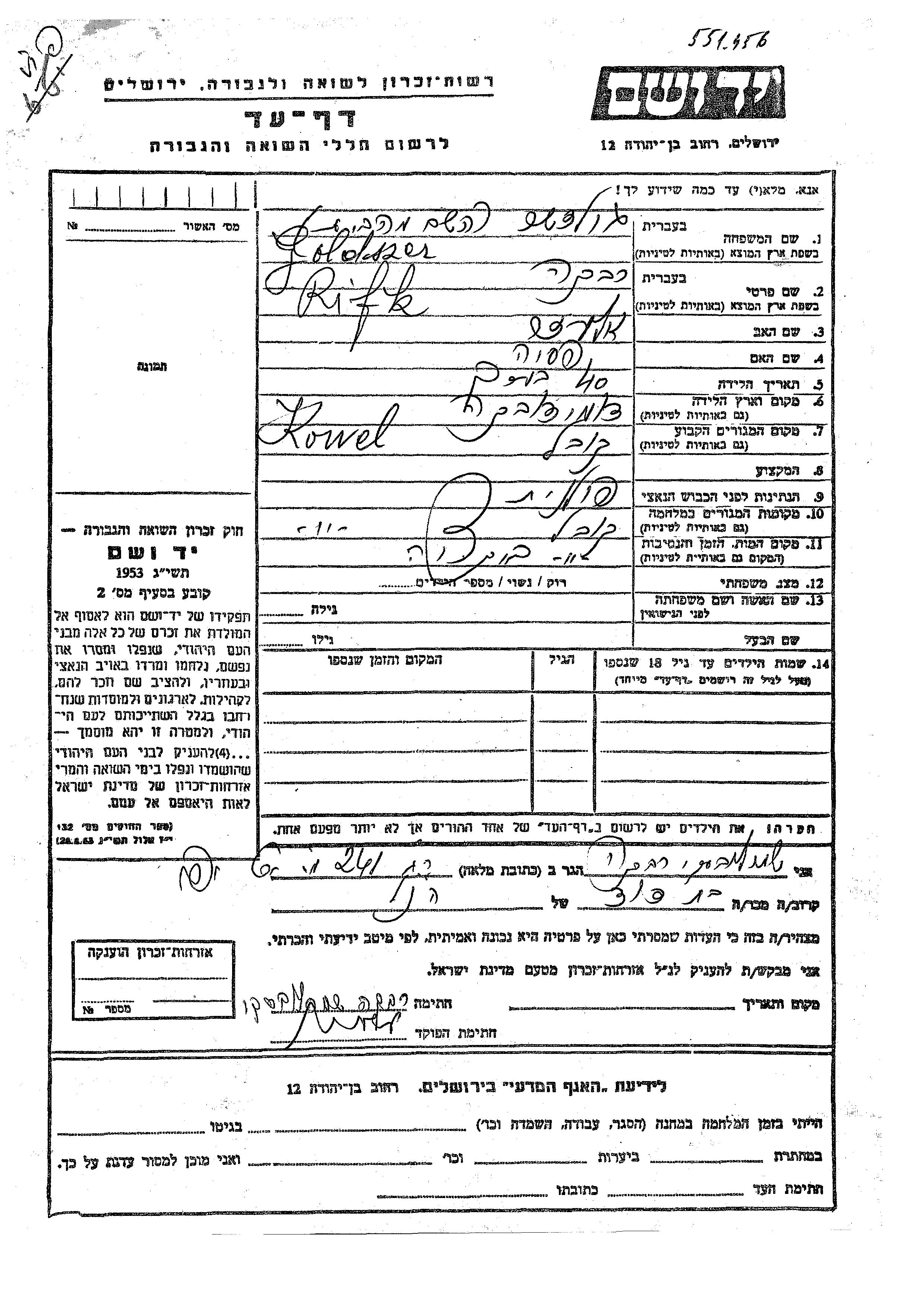 Яд Вашем - Листы свидетельских показаний Мемориального фонда