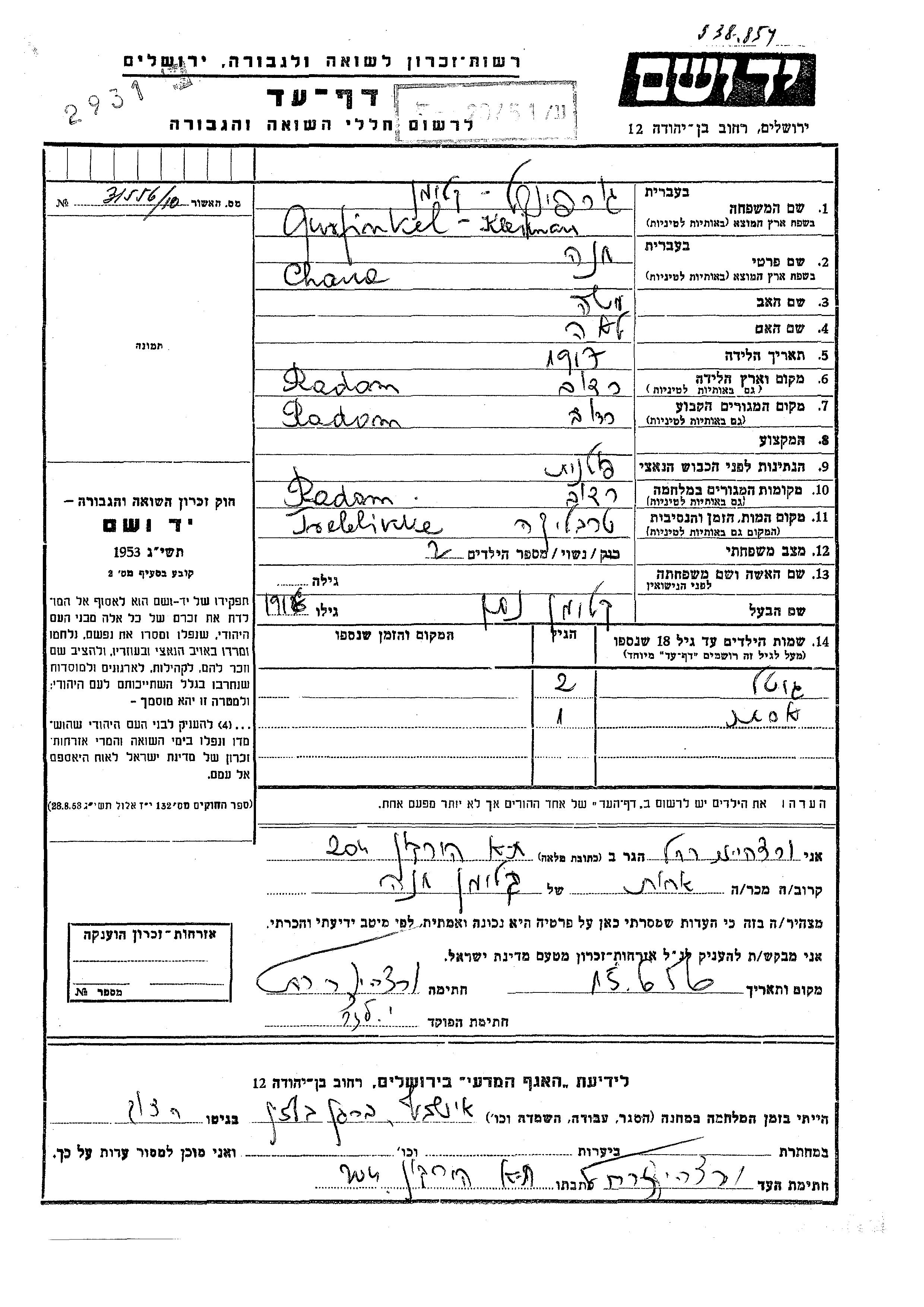Яд Вашем - Листы свидетельских показаний Мемориального фонда