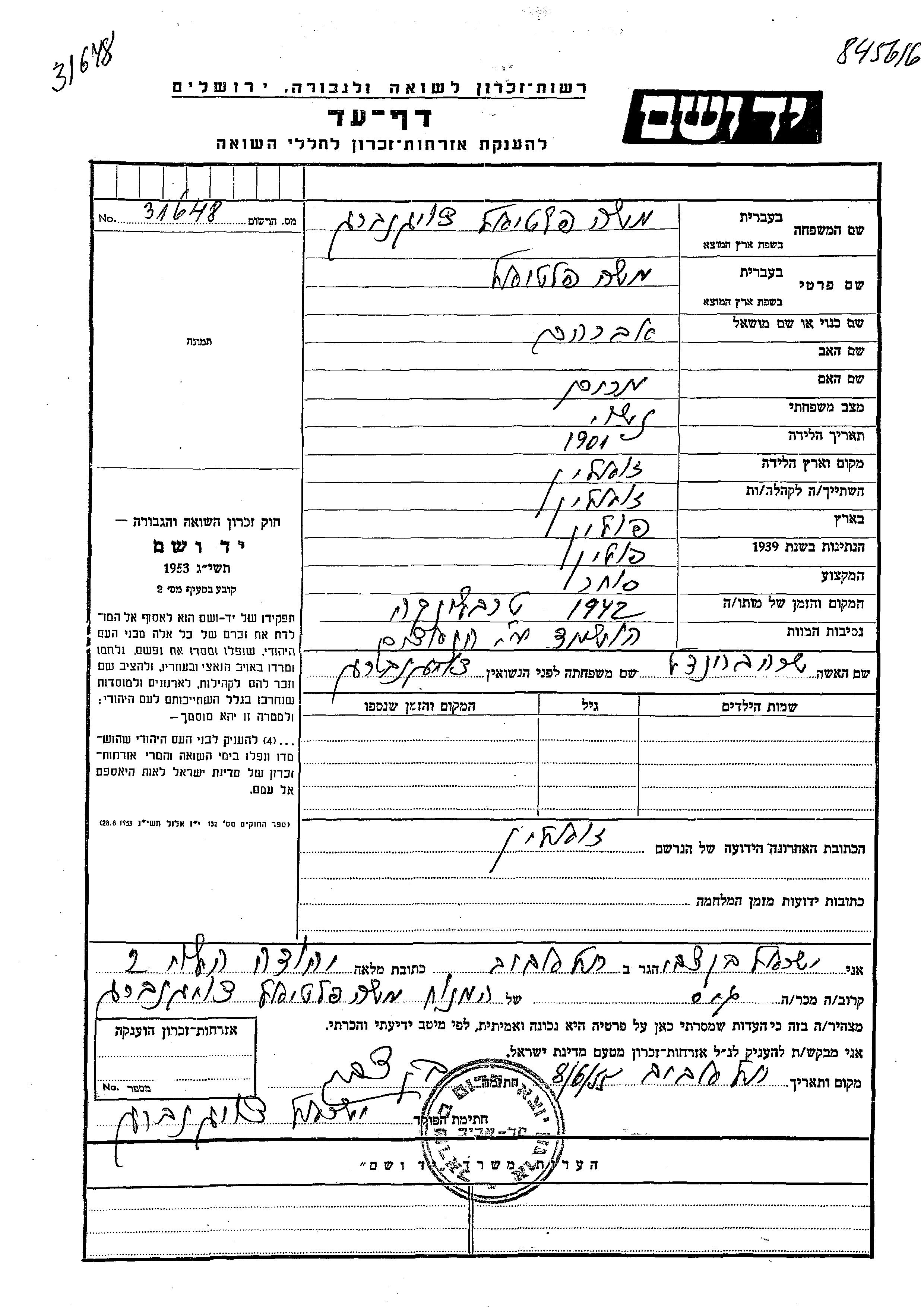 Яд Вашем - Листы свидетельских показаний Мемориального фонда