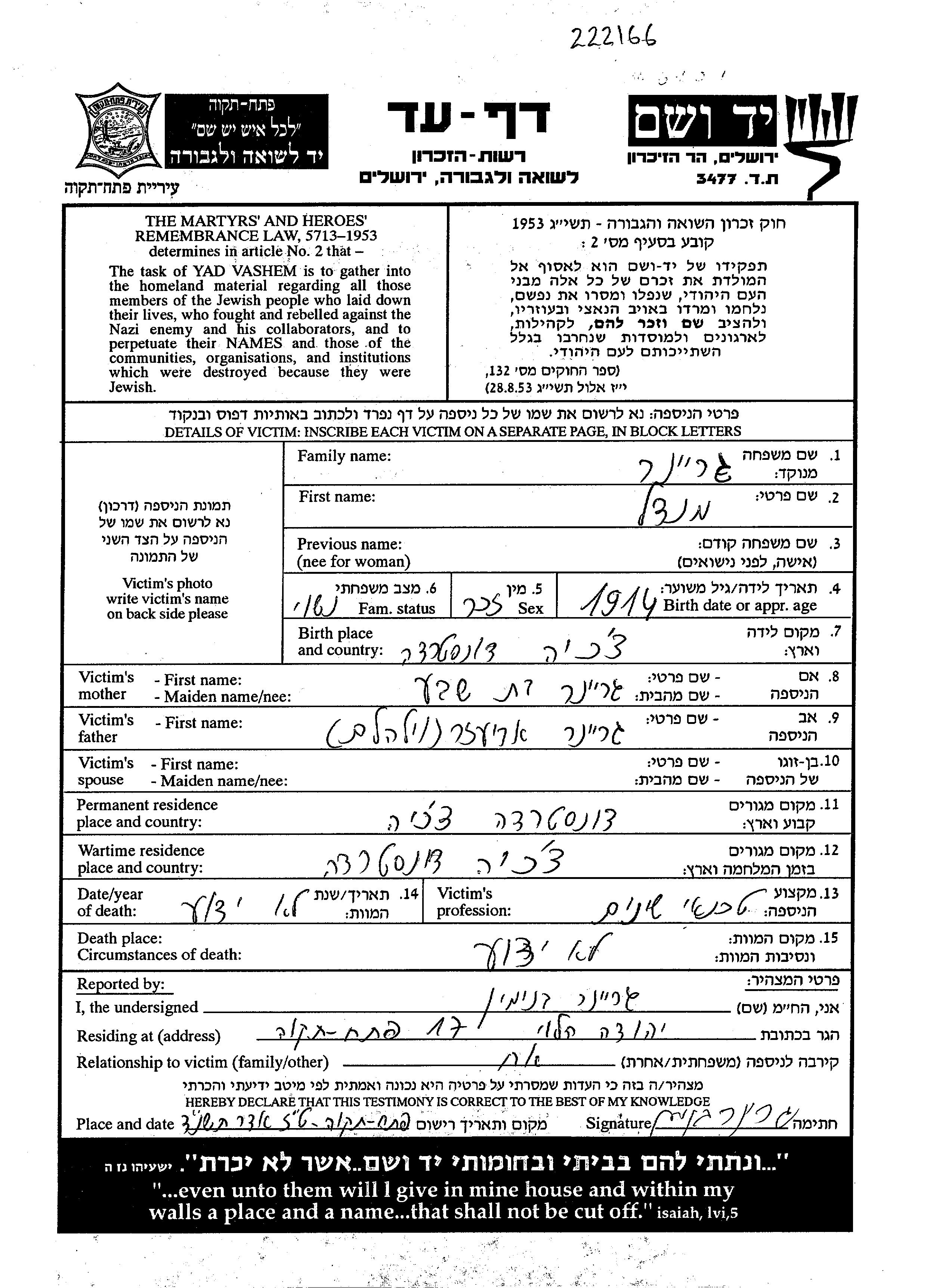 Грейнер | Мендель | 1914 | Дунайска-Стреда, Чехословакия | Лист свидетельских показаний |
