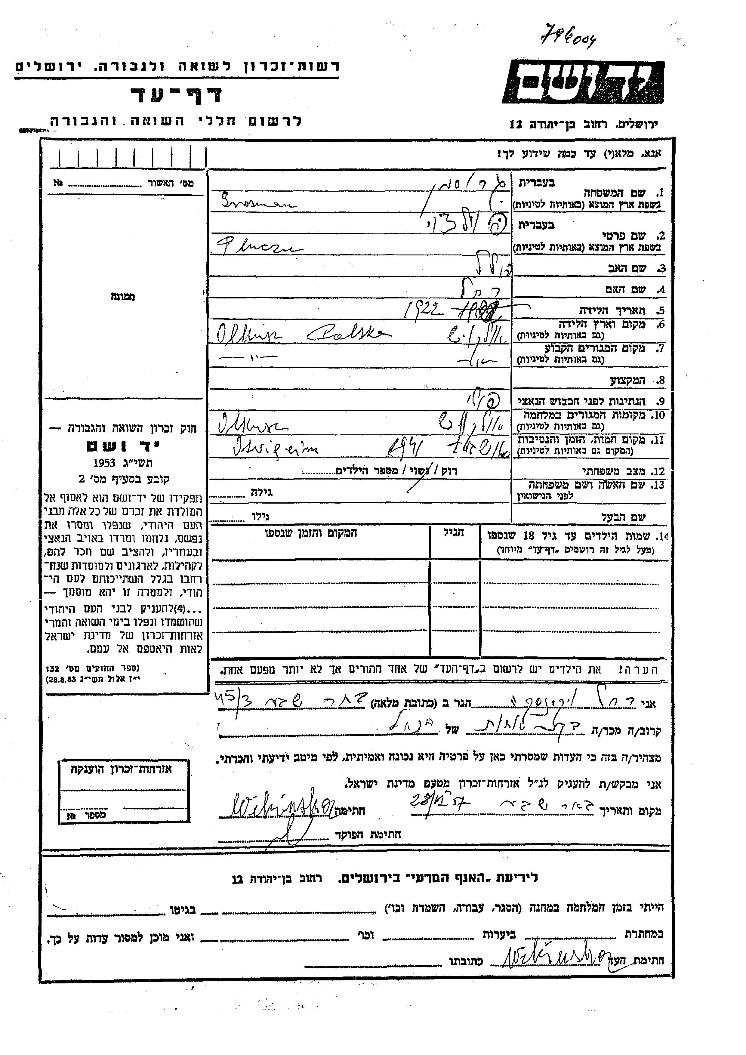 Яд Вашем - Листы свидетельских показаний Мемориального фонда