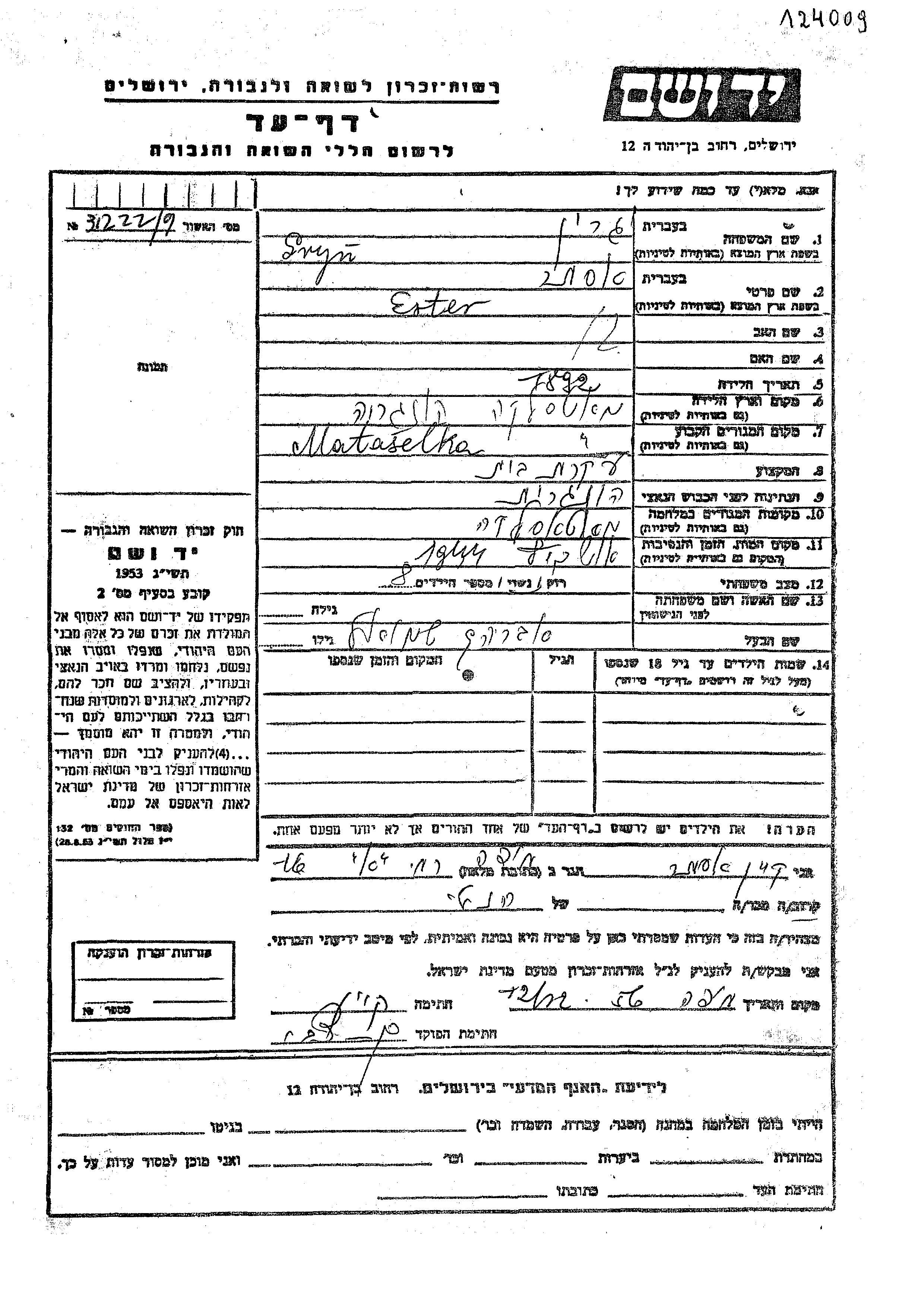 Эстер Грин, место рождения: Матесалька, Венгрия. Домохозяйка. Женат / замужем. Место жительства до войны: Матесалька, Венгрия. Место во время войны: Матесалька, Венгрия.