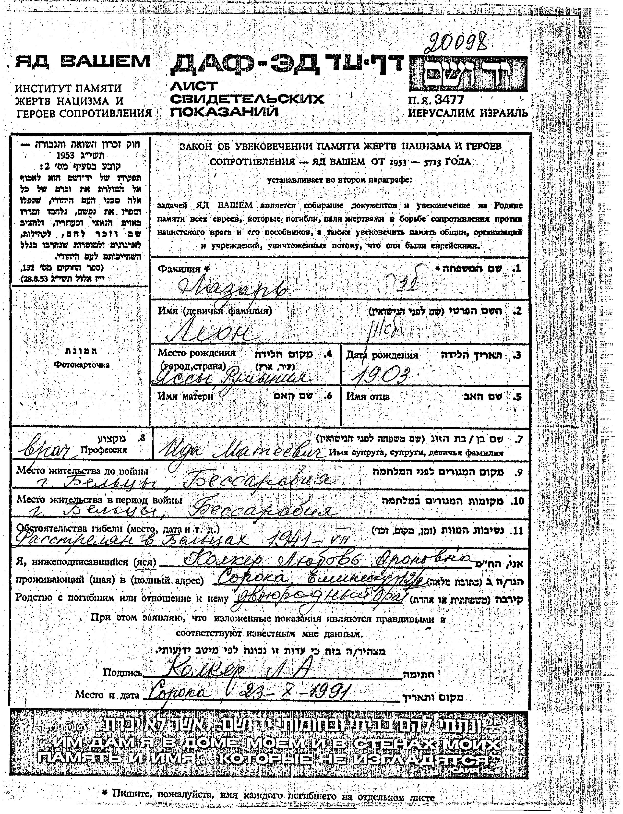Поиск подателя Листа свидетельских показаний. Поиск по любому имени, включая уменьшительное или прозвище