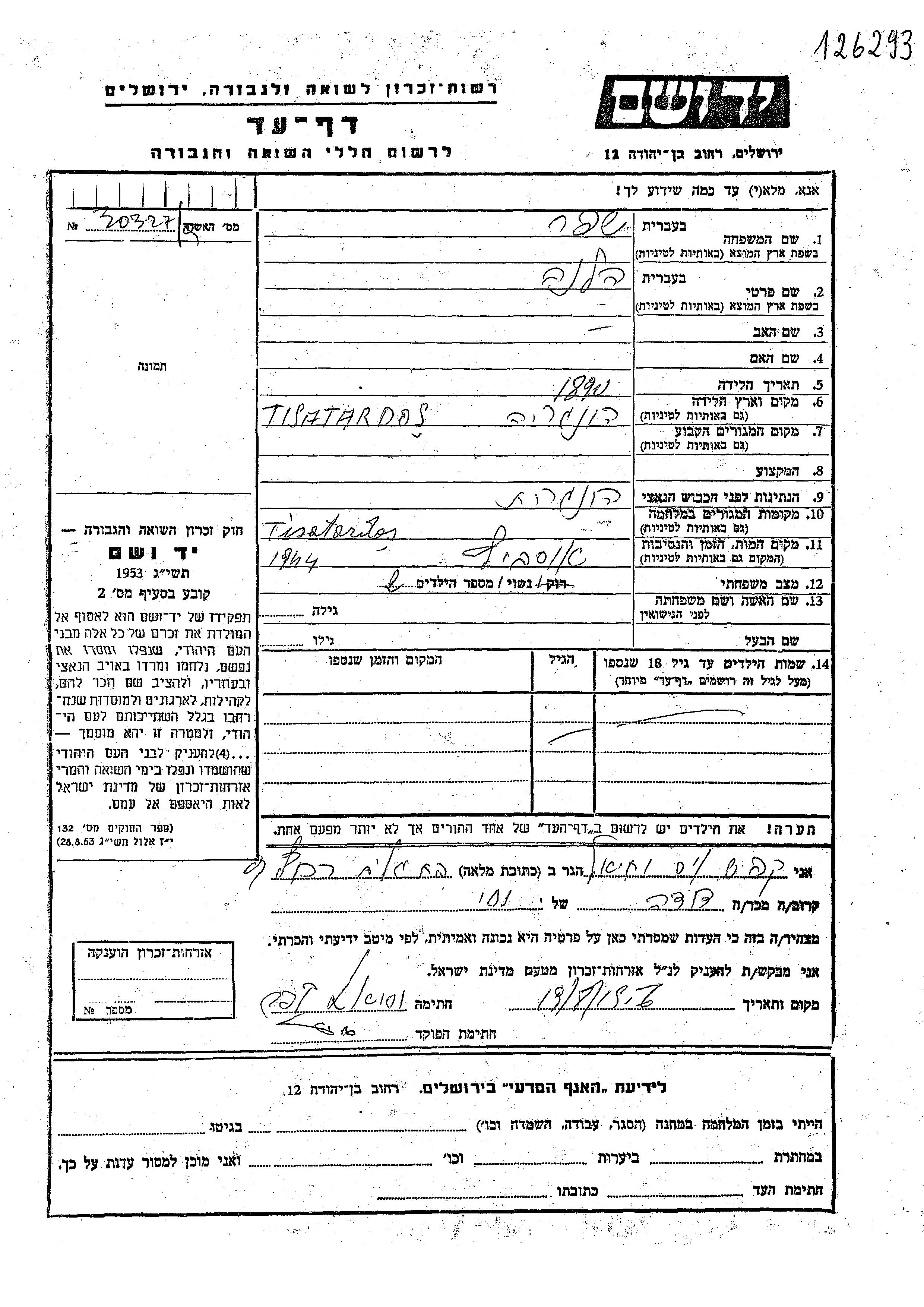 Яд Вашем - Листы свидетельских показаний Мемориального фонда