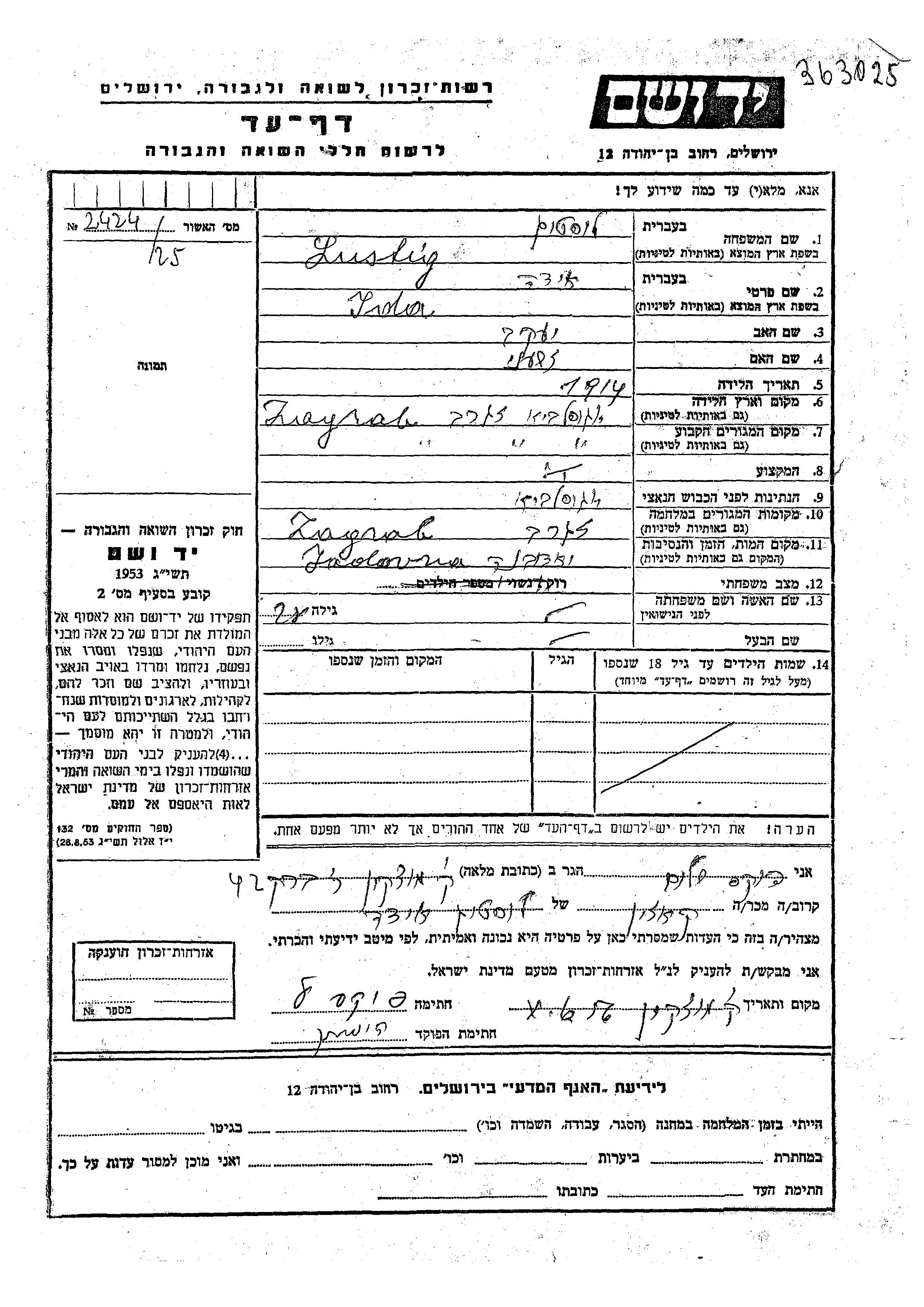Люстиг | Ида | 1914 | Загреб, Югославия | Лист свидетельских показаний |