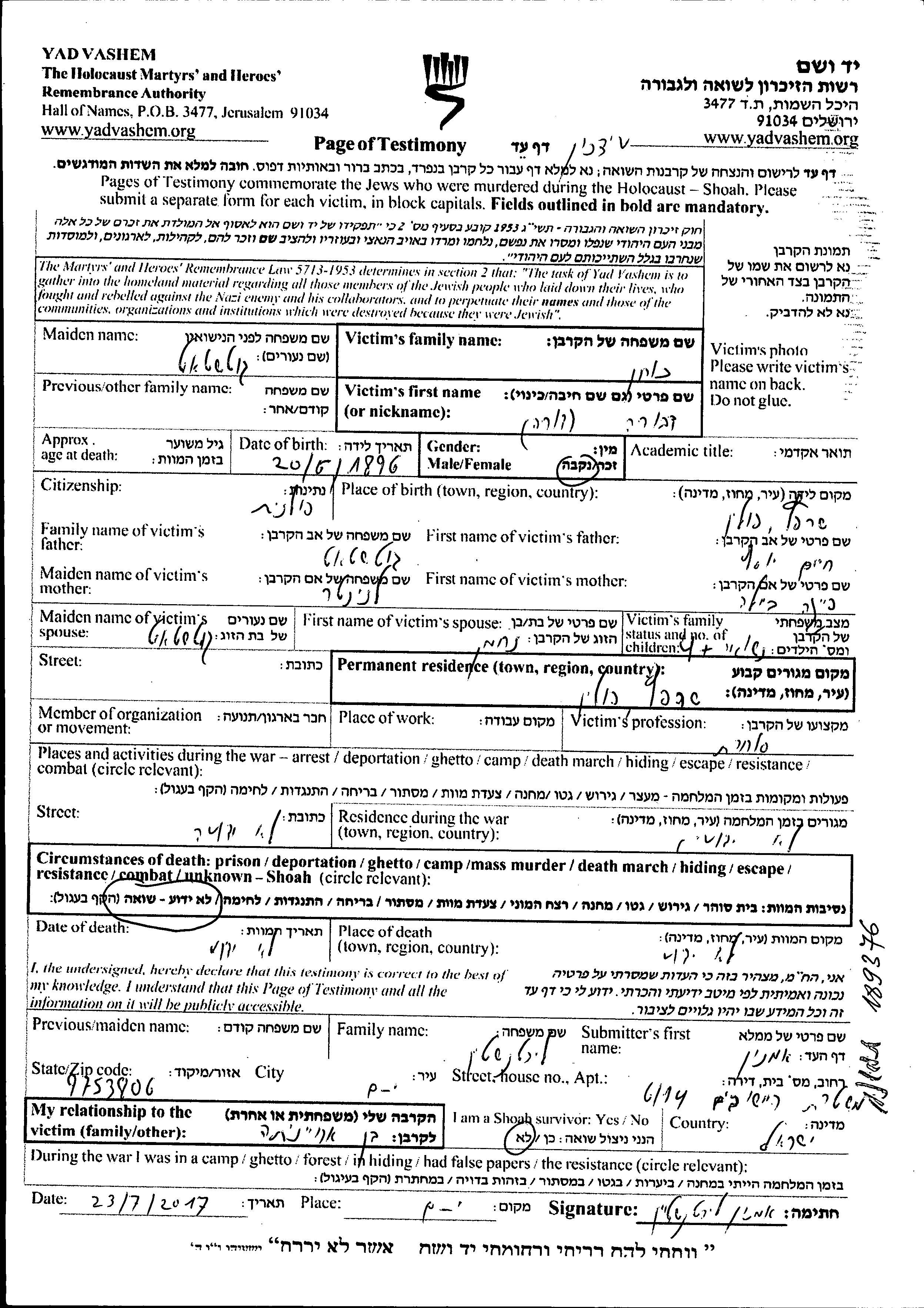 Кохен | Двора | Серпц, Польша | Лист свидетельских показаний | |