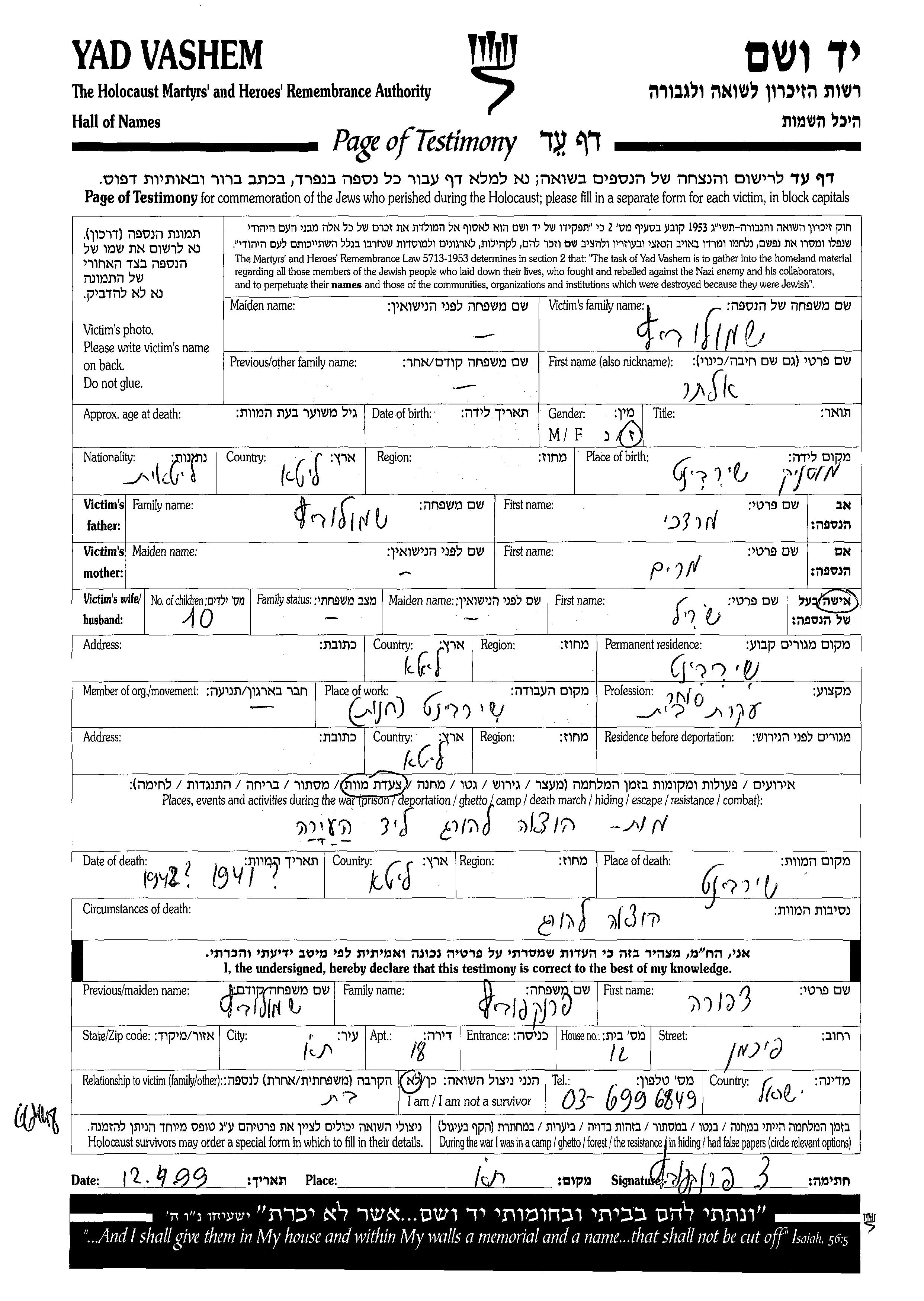 Во время Шоа: 1933-1945гг; точно или в диапазоне 2-5 лет